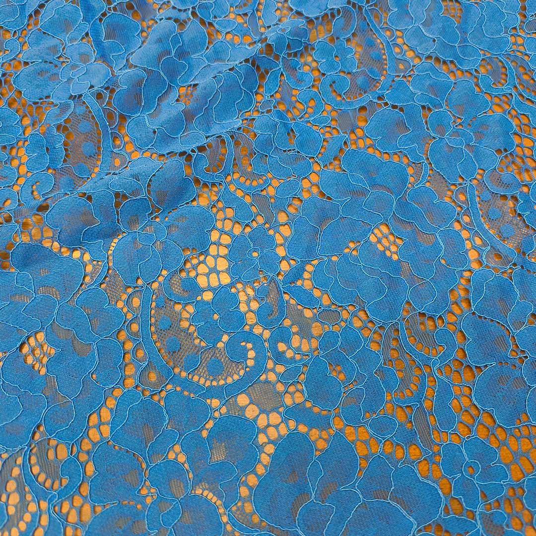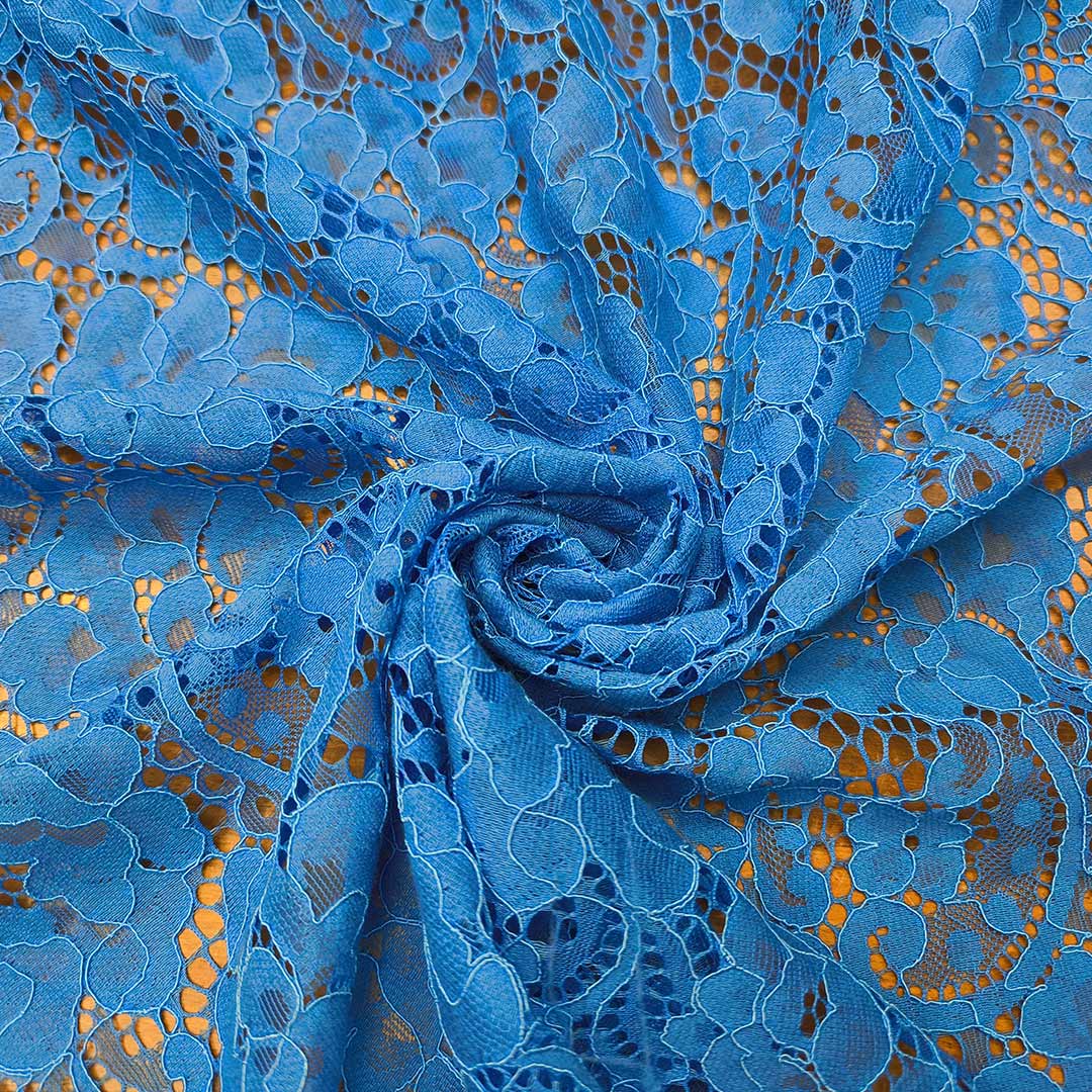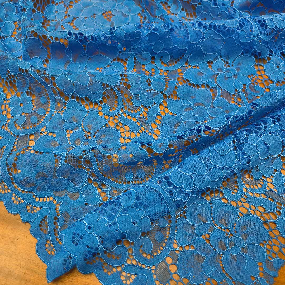 Tessuto Pizzo doppio smerlo motivo floreale blu elettrico