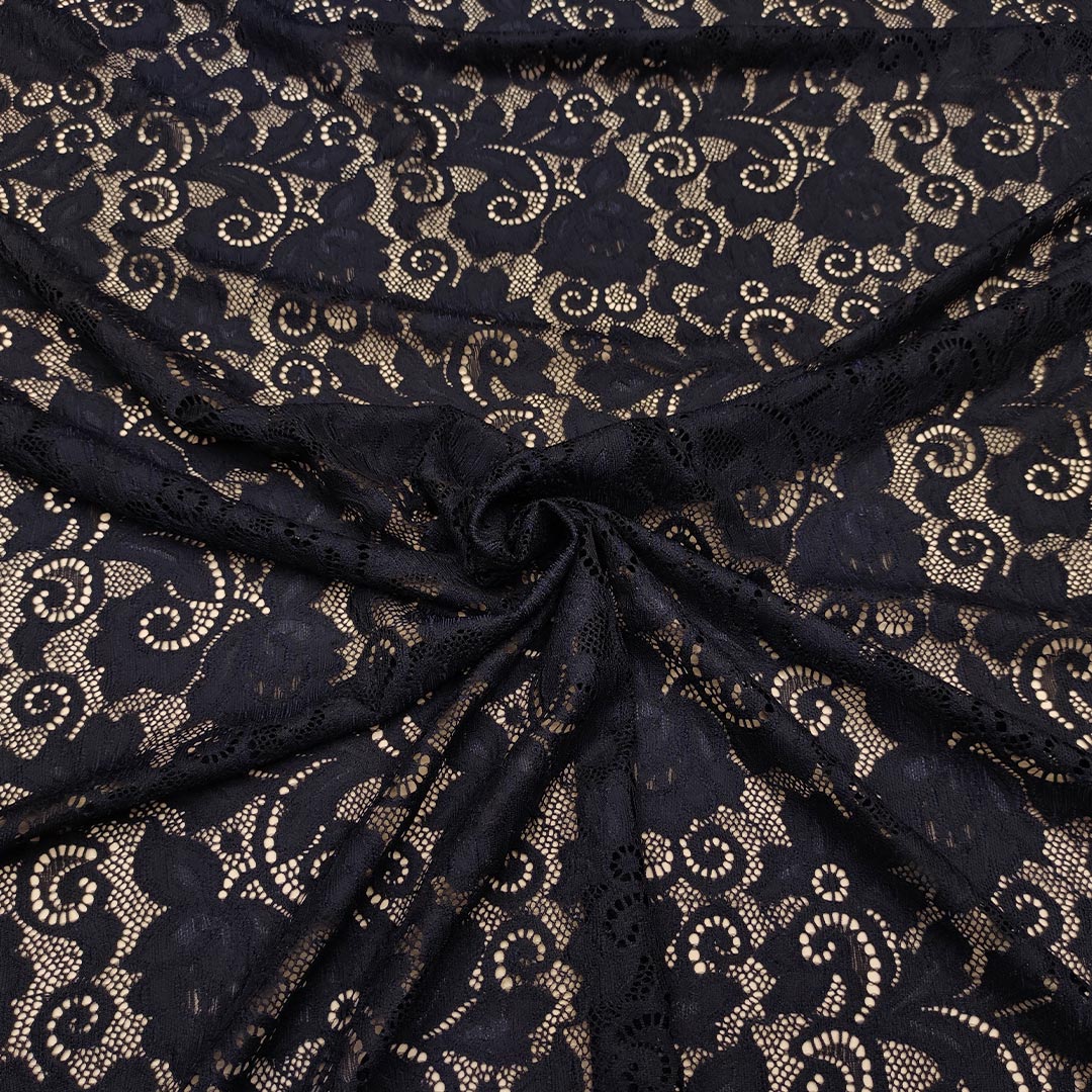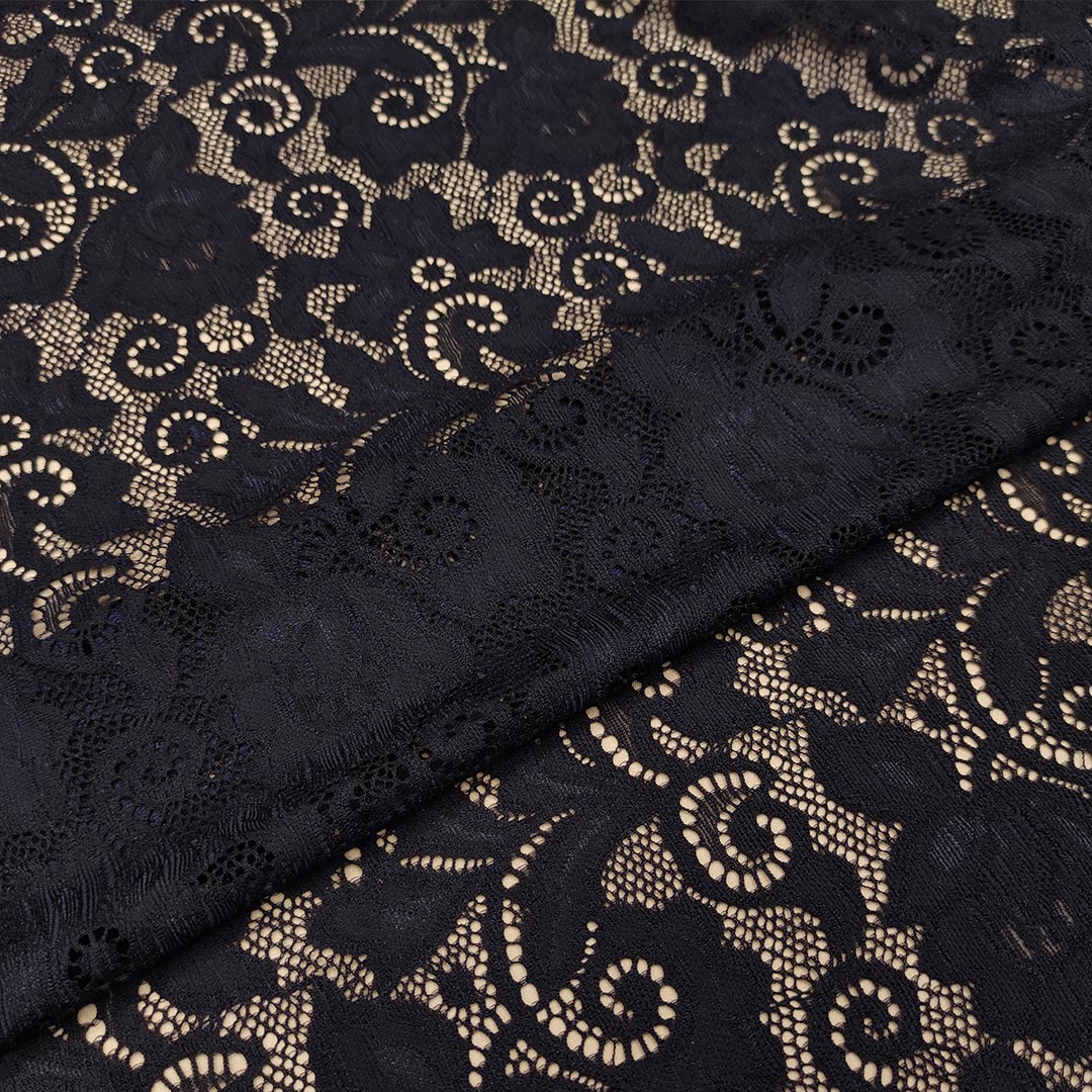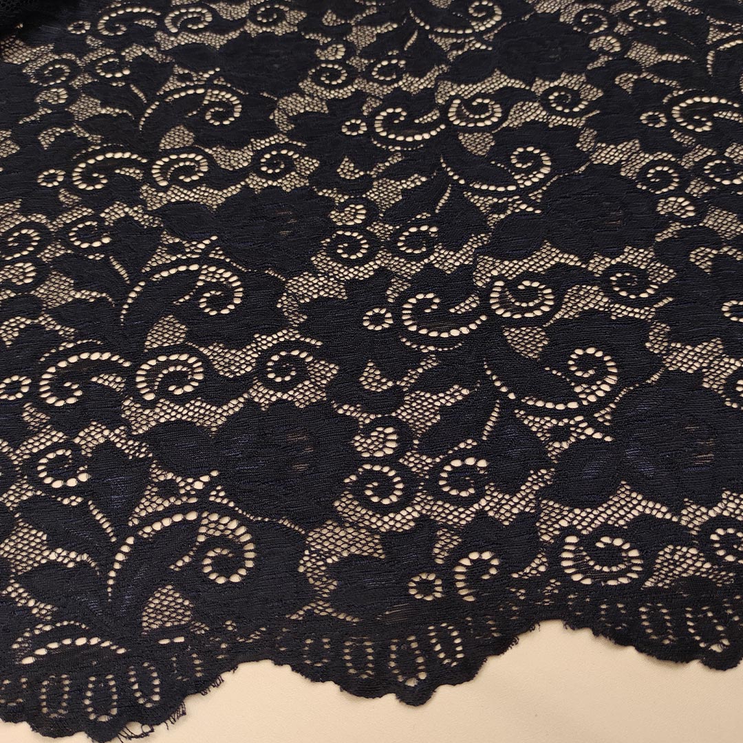 Tessuto pizzo elasticizzato doppio smerlo motivo floreale blu notte
