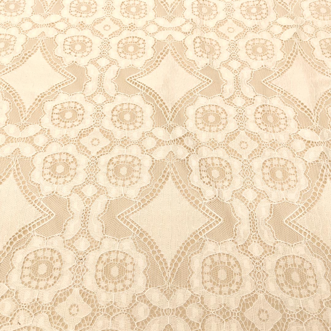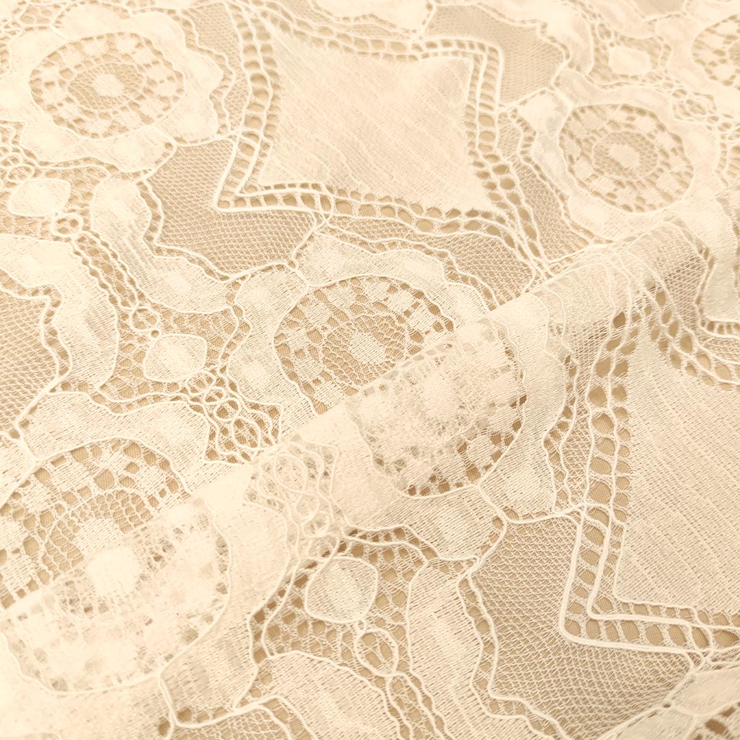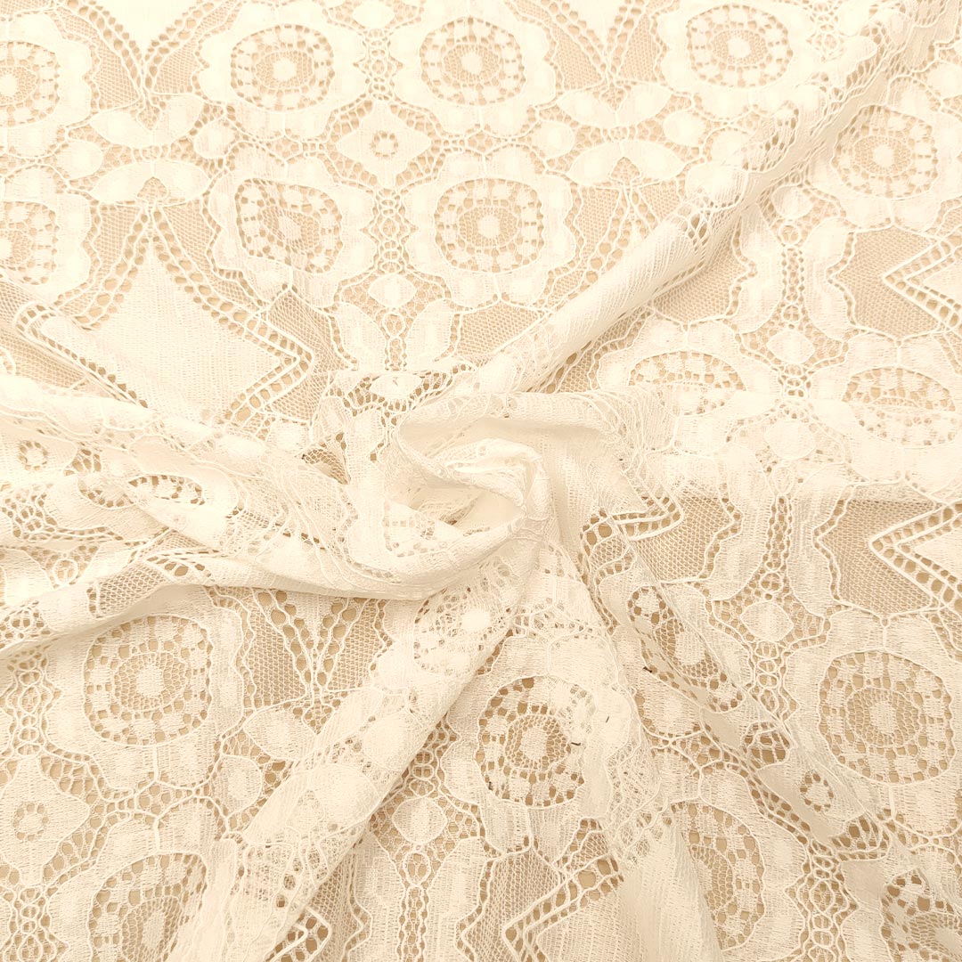 Tessuto pizzo elasticizzato doppio smerlo motivo geometrico bianco seta