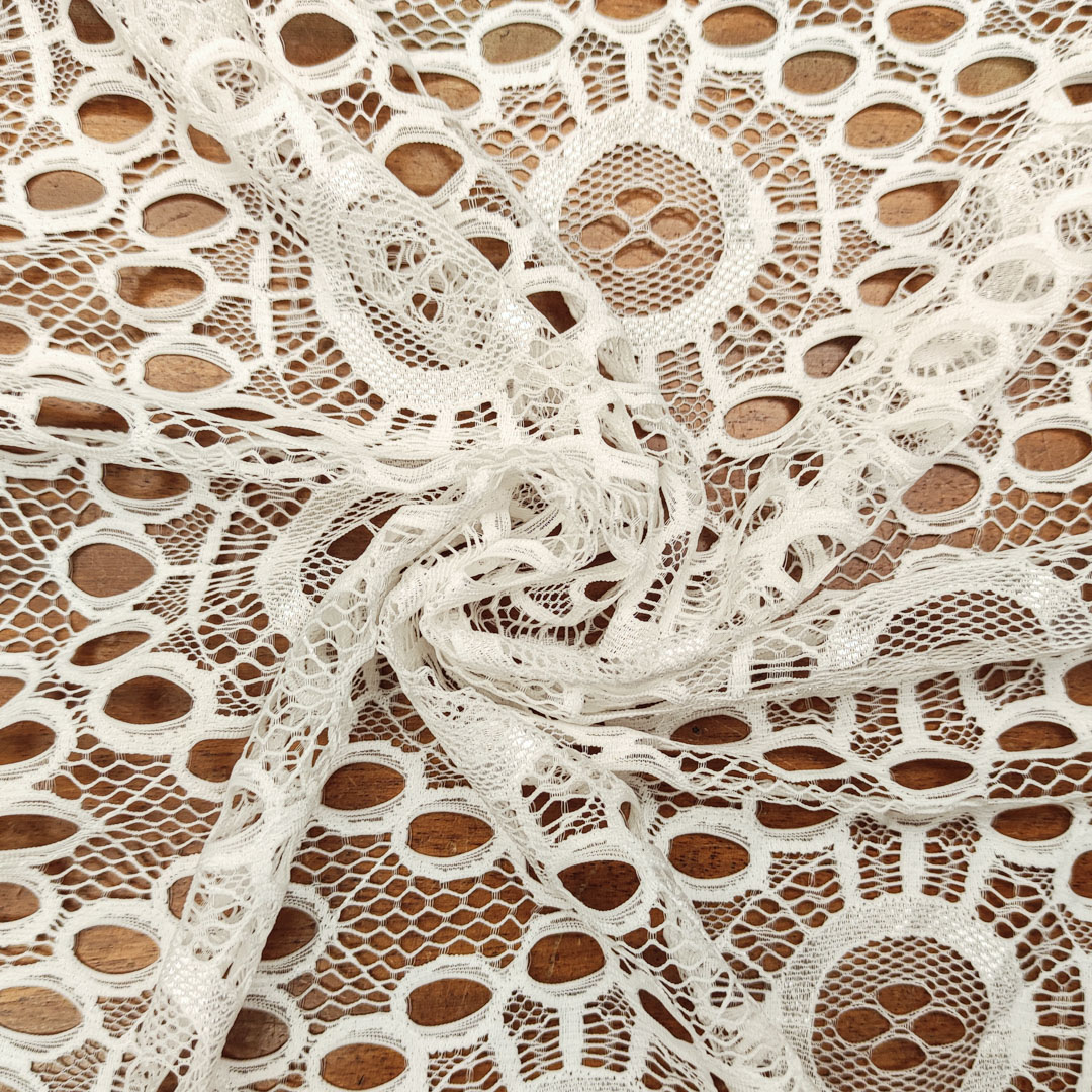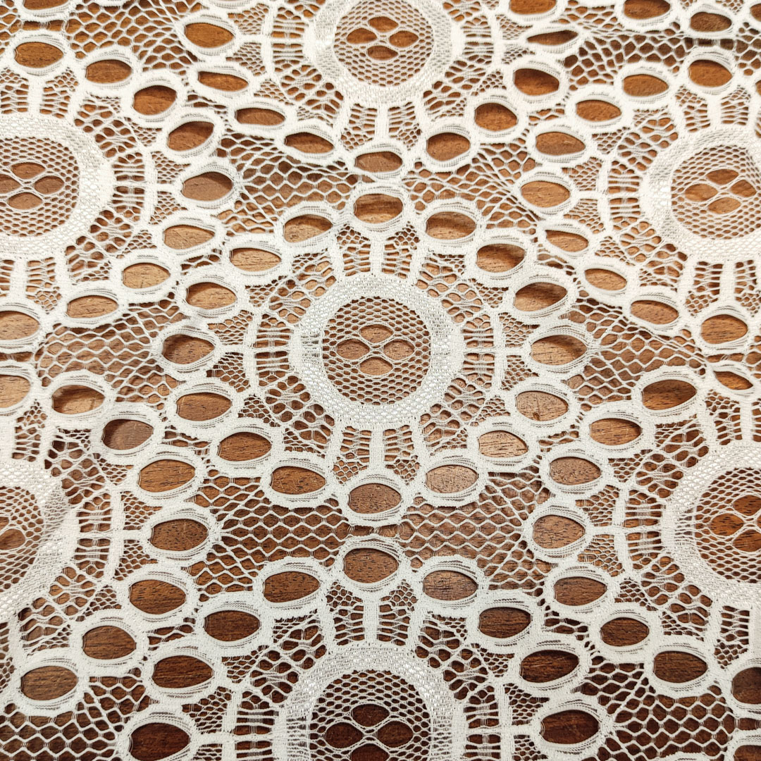 Tessuto pizzo elasticizzato motivo astratto bianco