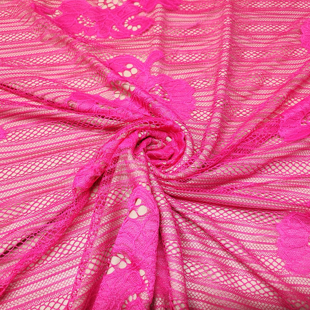 Tessuto pizzo elasticizzato motivo astratto fucsia