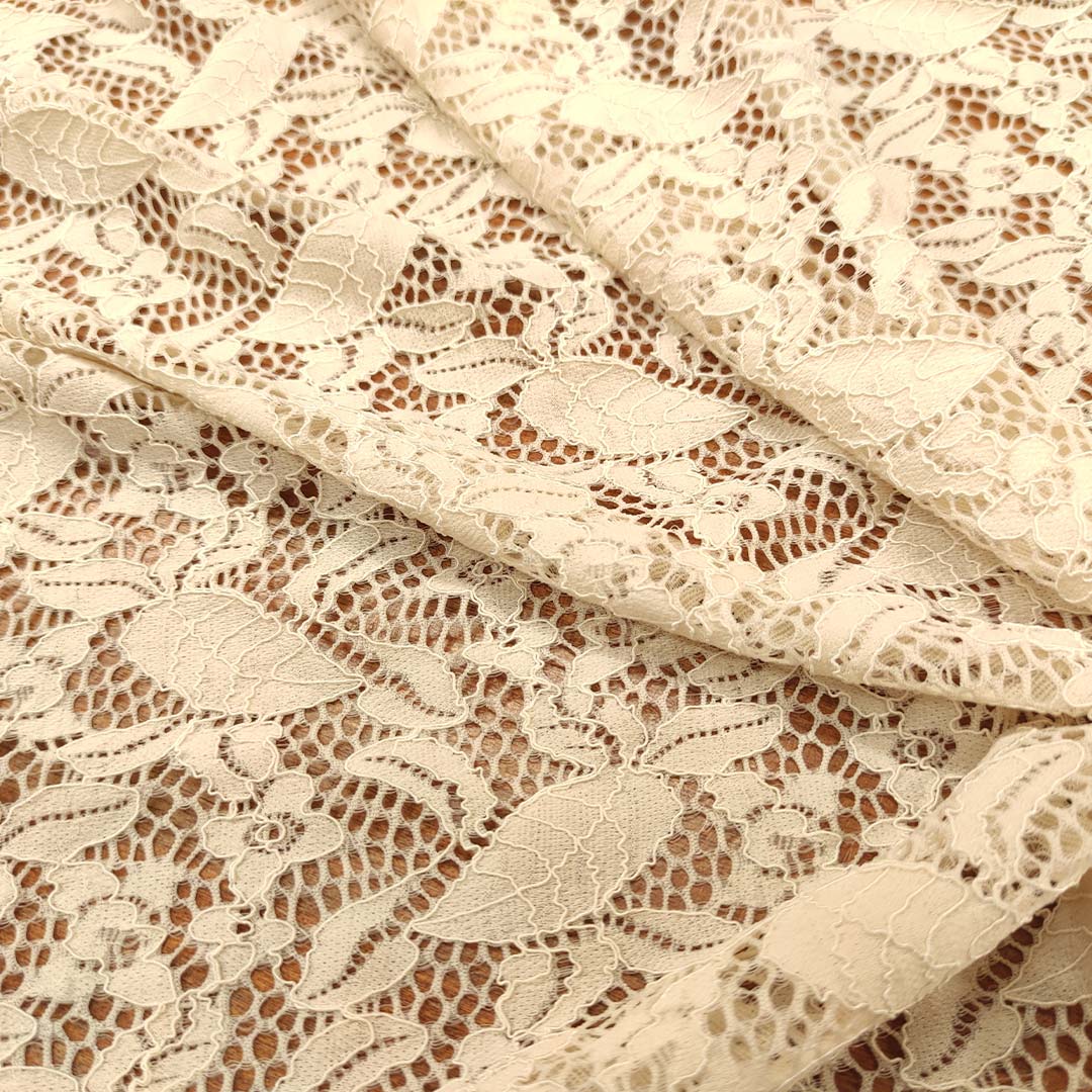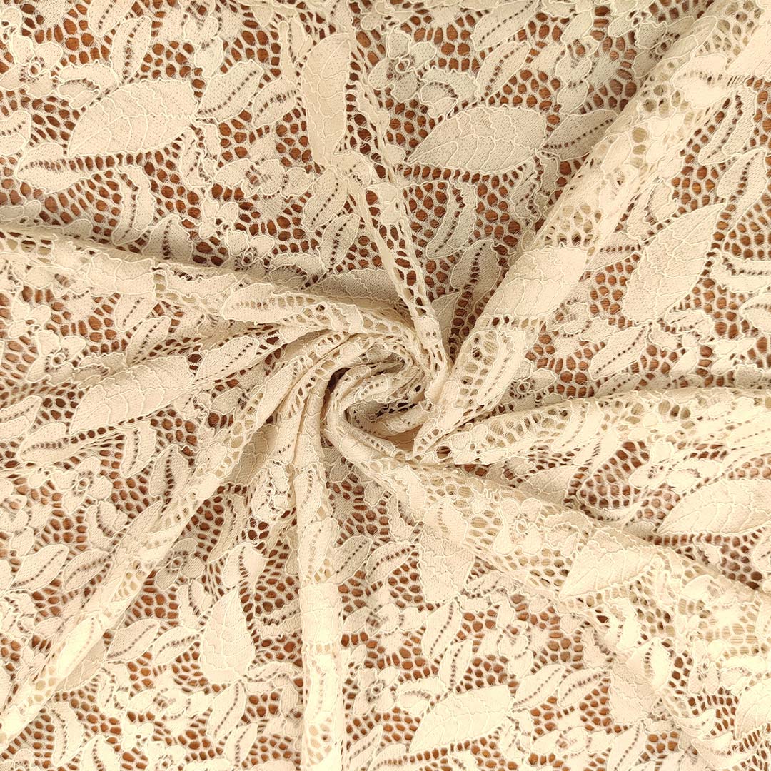 Tessuto pizzo elasticizzato motivo floreale avorio