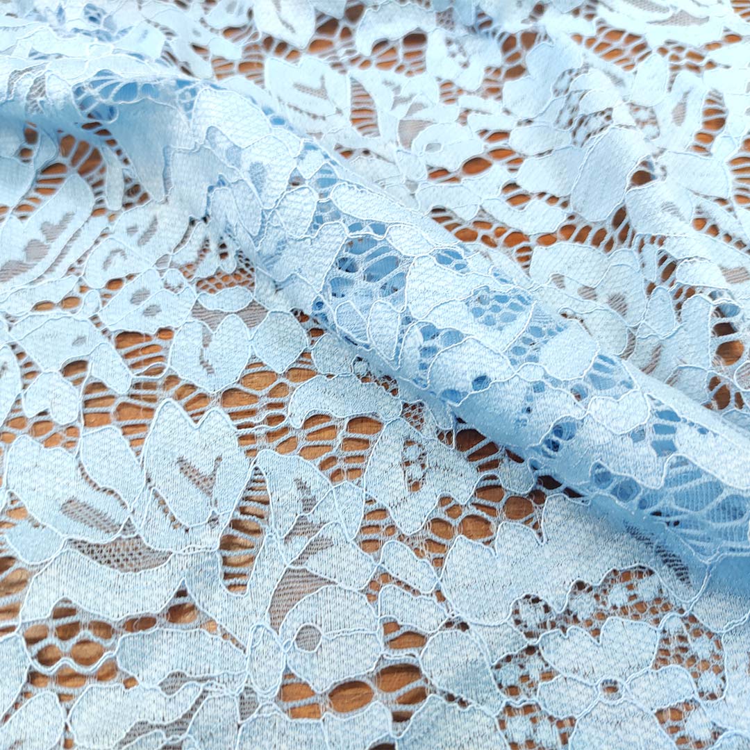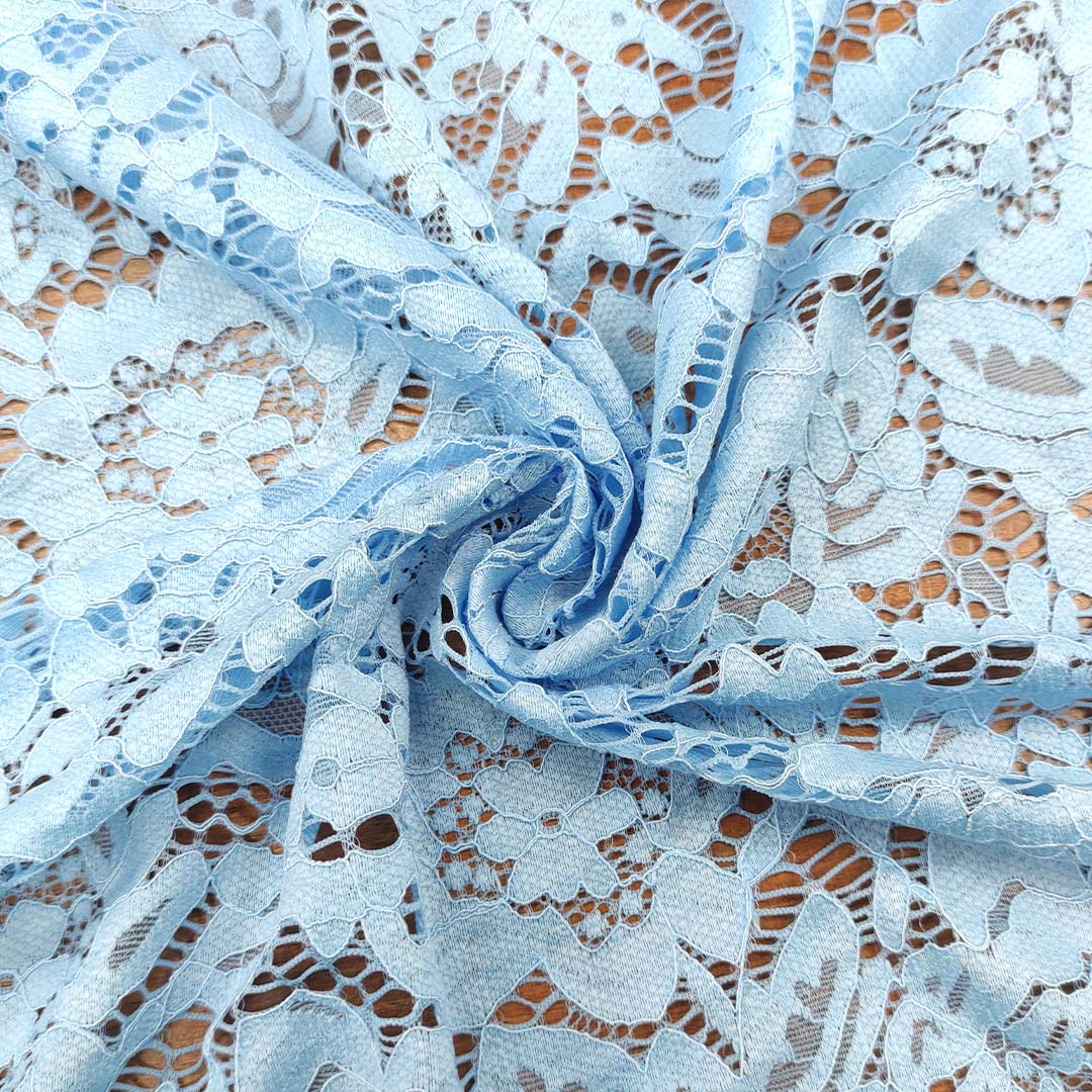 Tessuto pizzo elasticizzato motivo floreale azzurro
