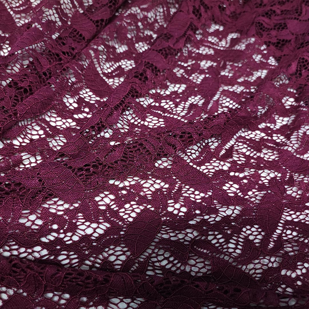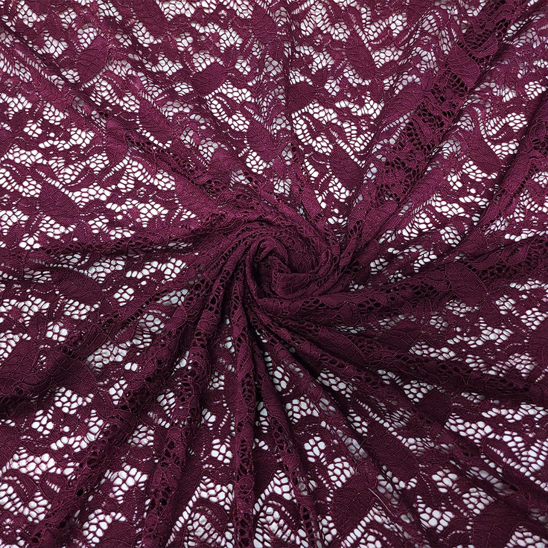 Tessuto pizzo elasticizzato motivo floreale bordeaux