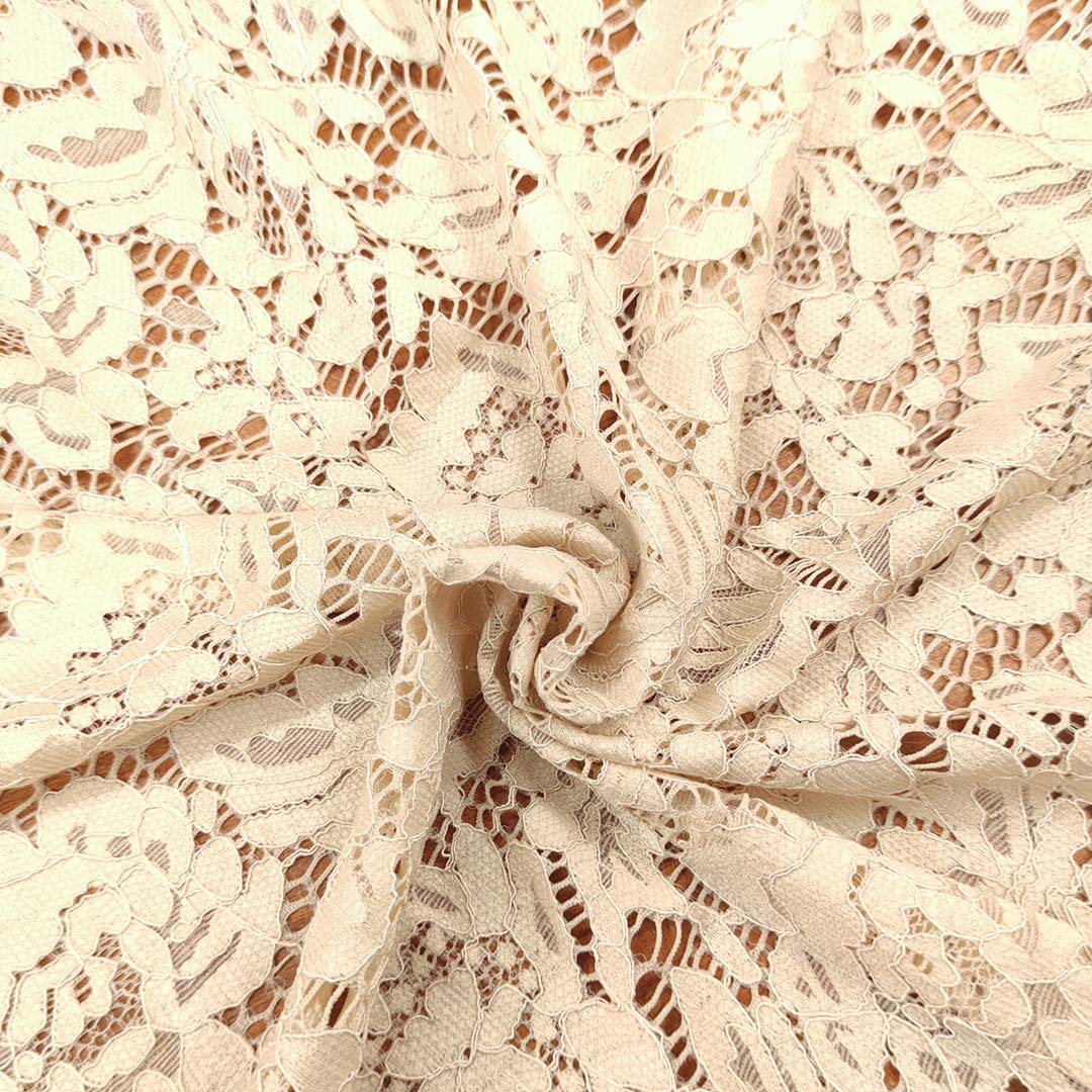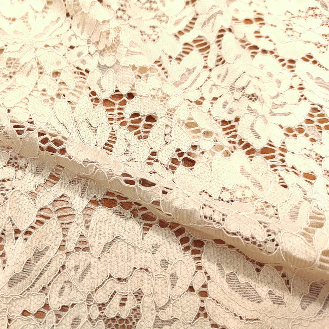 Tessuto pizzo elasticizzato motivo floreale champagne