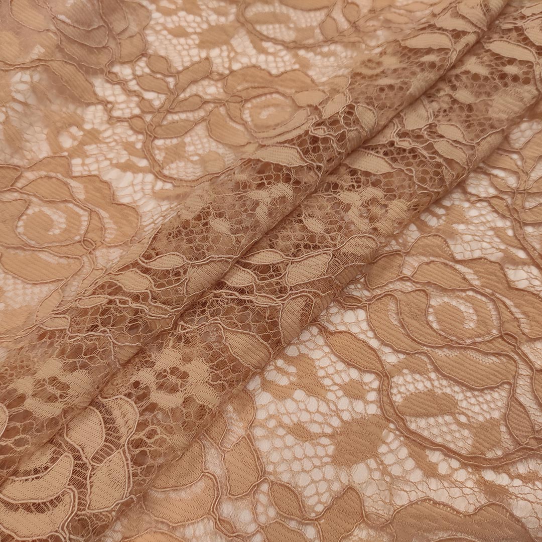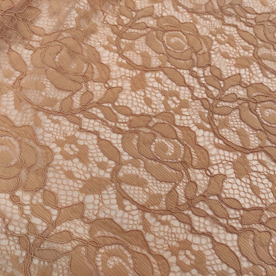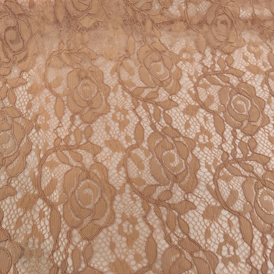 Tessuto Pizzo elasticizzato motivo floreale rosa antico