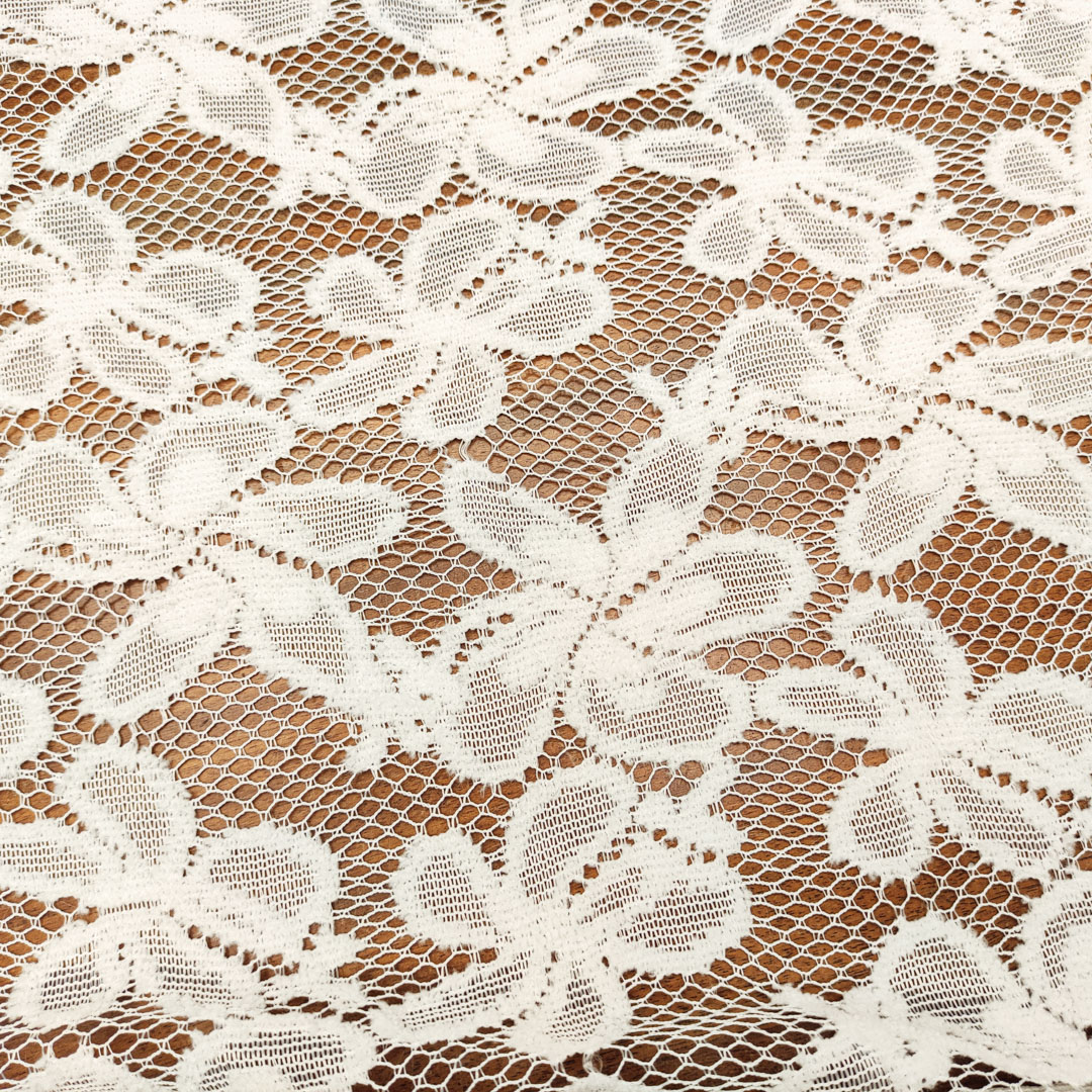 Tessuto pizzo mano lana motivo floreale bianco