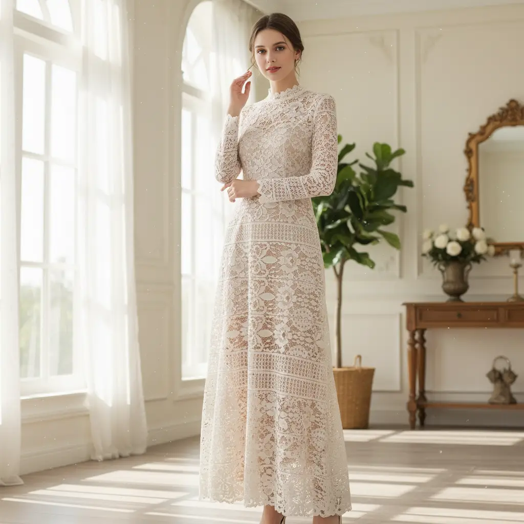 Tessuto Pizzo dalla mano morbida e leggera, ideale per realizzare capi ricercati e sempre alla moda.