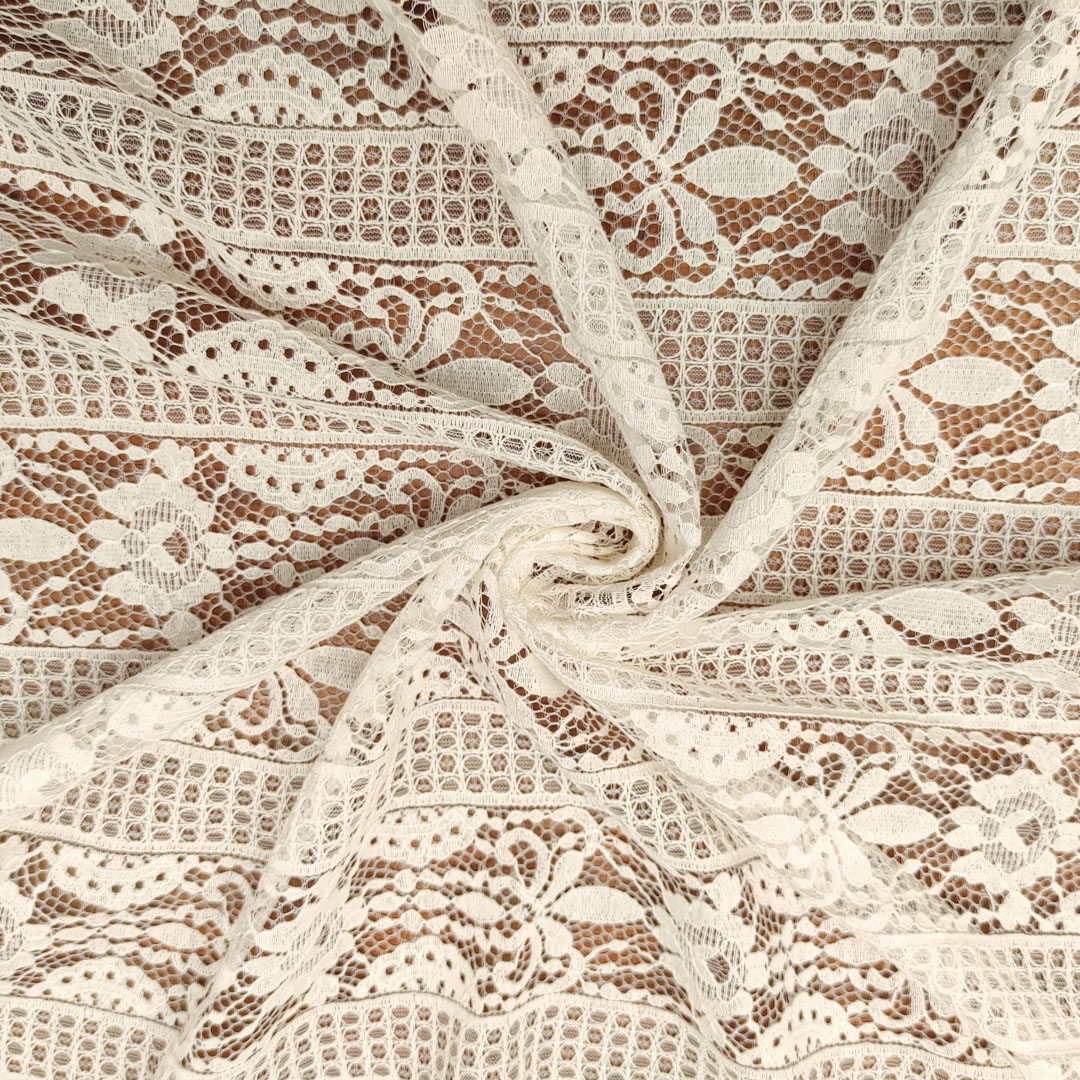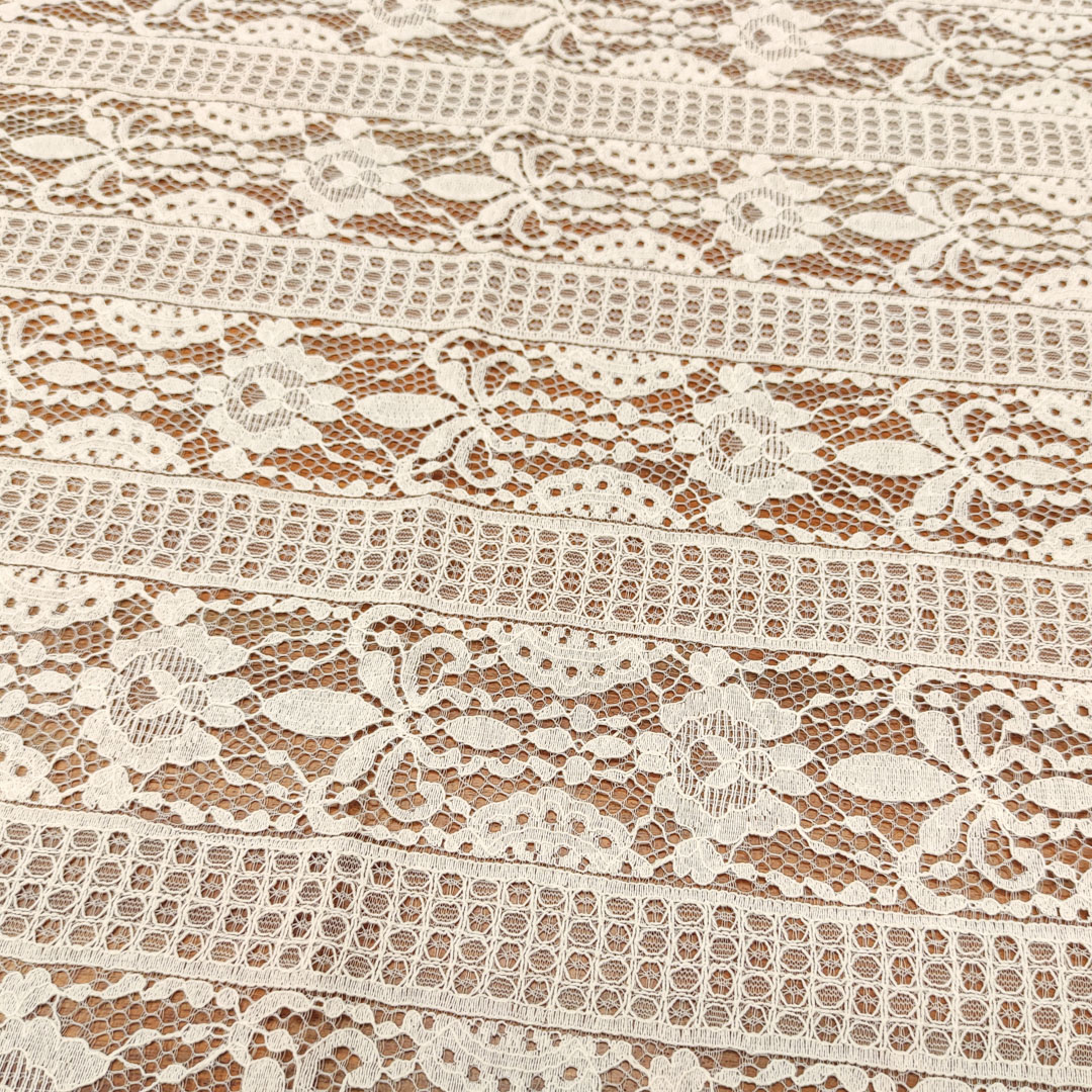 Tessuto pizzo motivo floreale bianco sporco