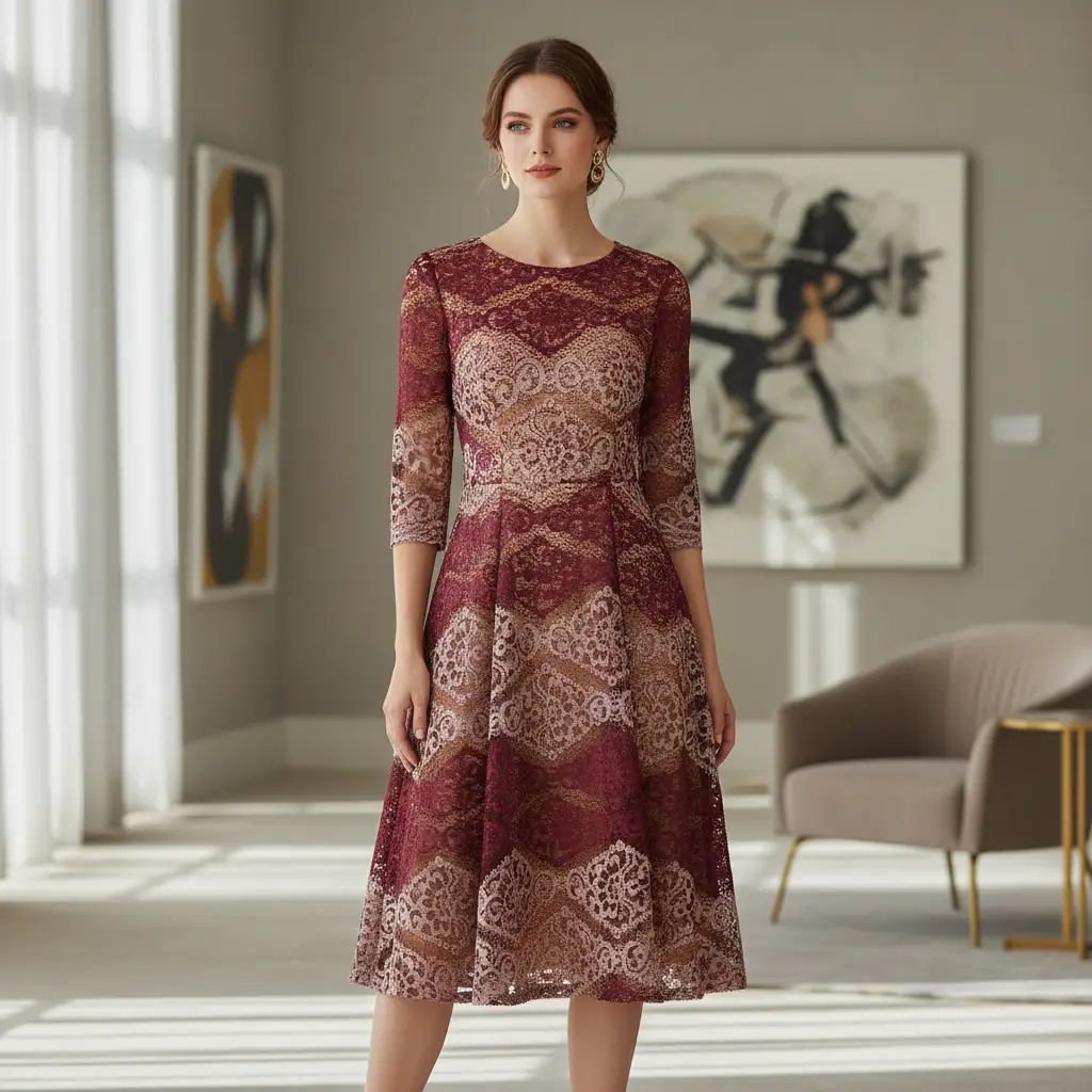 Tessuto Pizzo motivo floreale rosa – vinaccio