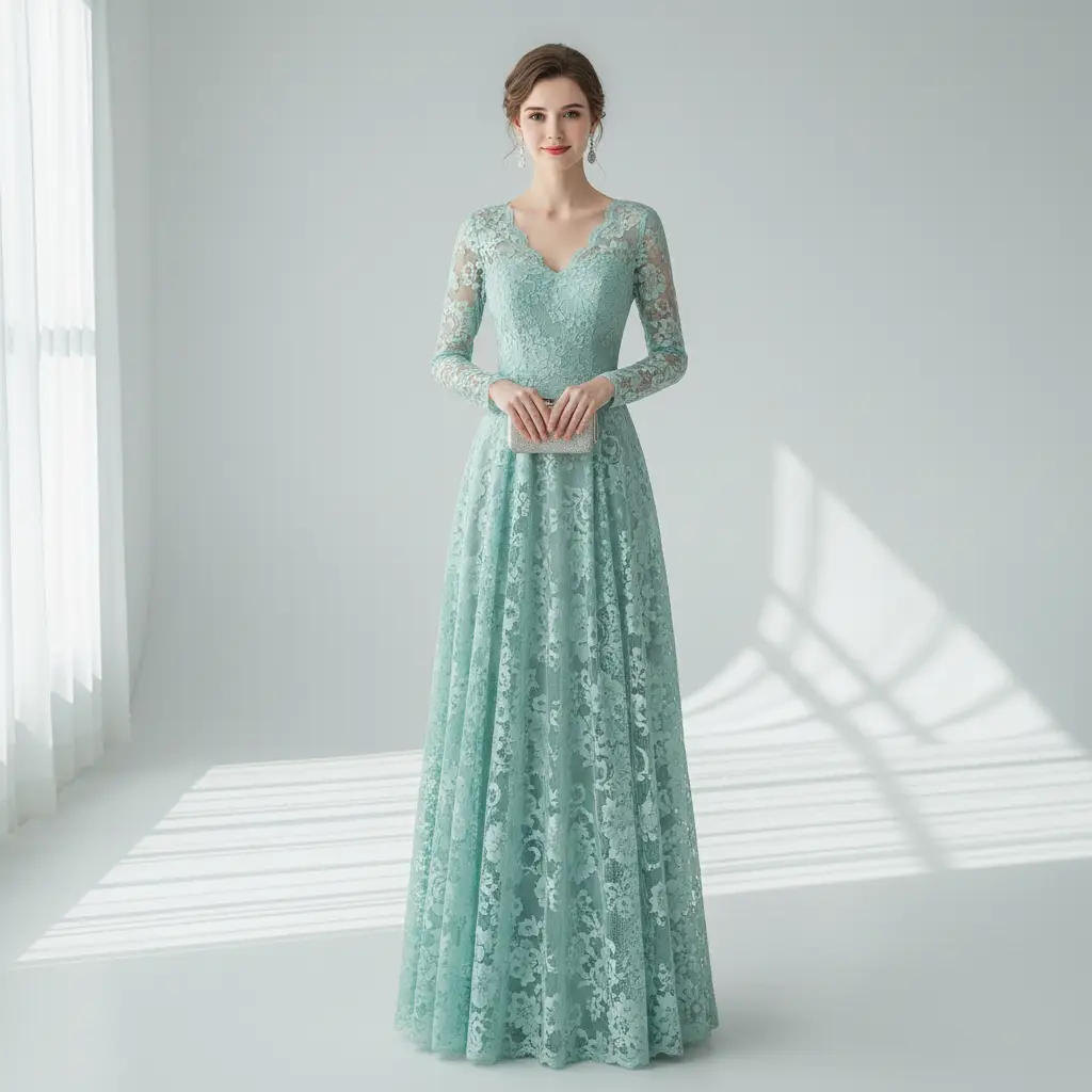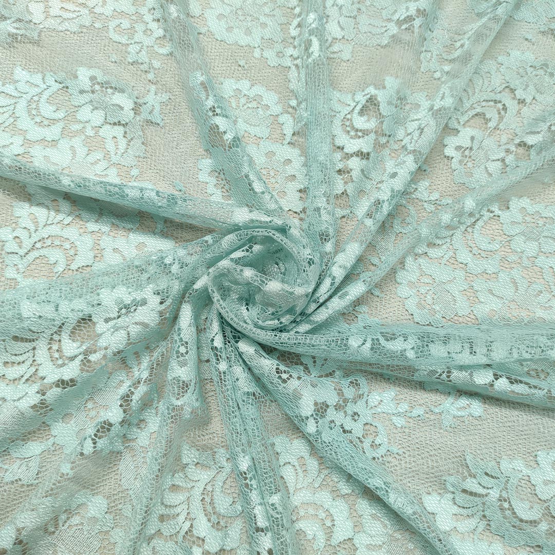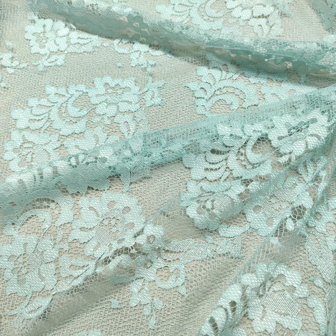 Tessuto pizzo motivo floreale verde tiffany