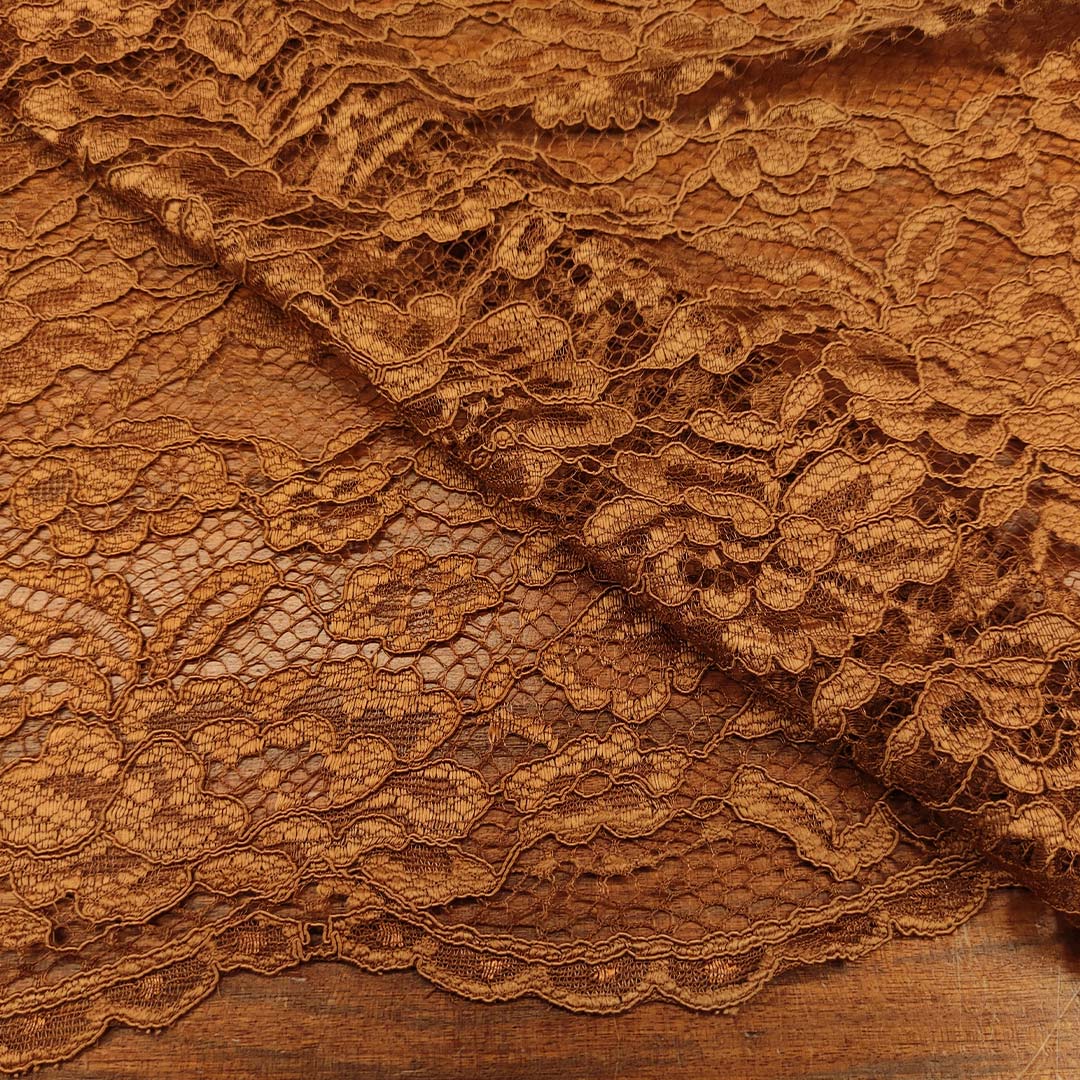 Tessuto pizzo rebrodè doppio smerlo motivo floreale bronzo