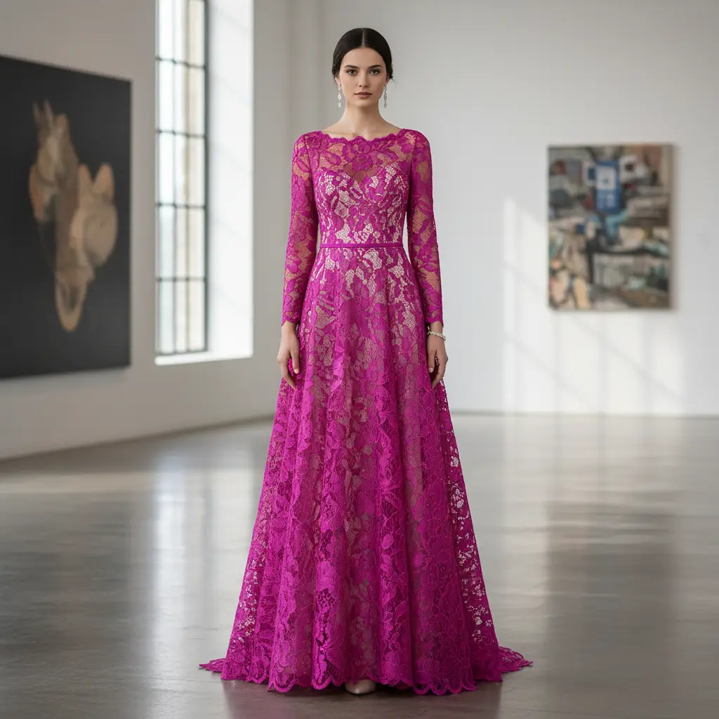 Tessuto Pizzo Rebrodè doppio smerlo tinta unita motivo floreale azalea