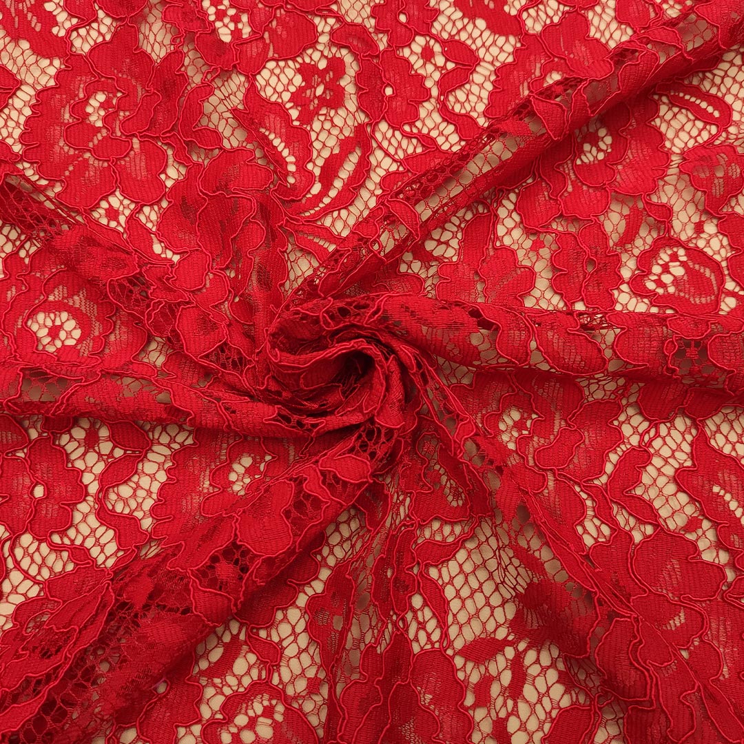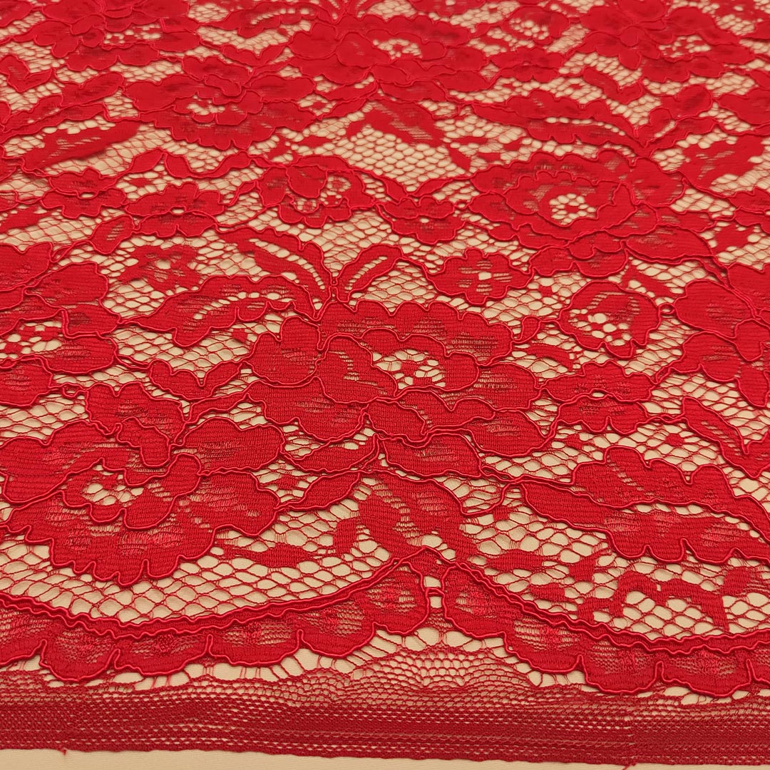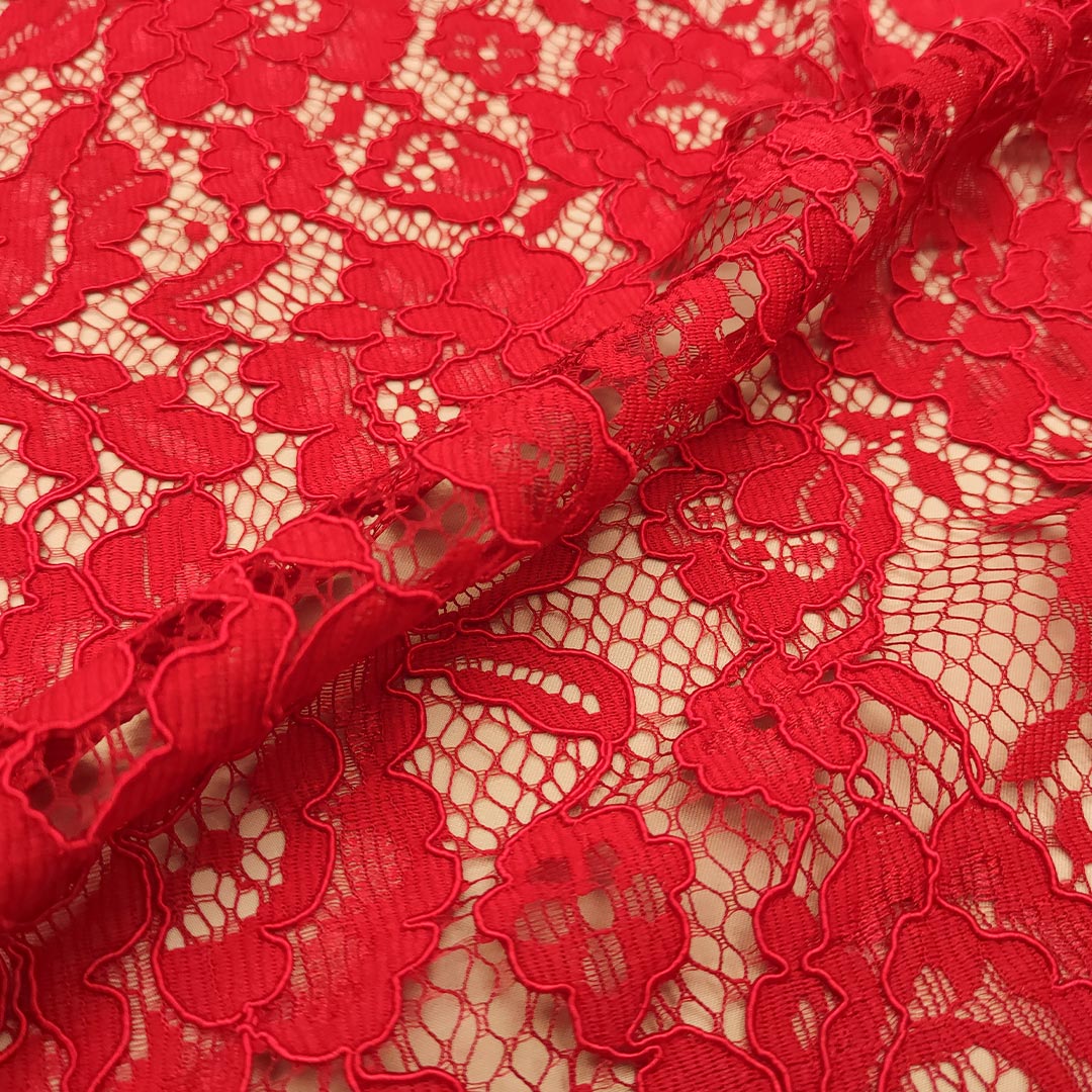 Tessuto Pizzo Rebrodè doppio smerlo tinta unita motivo floreale rosso