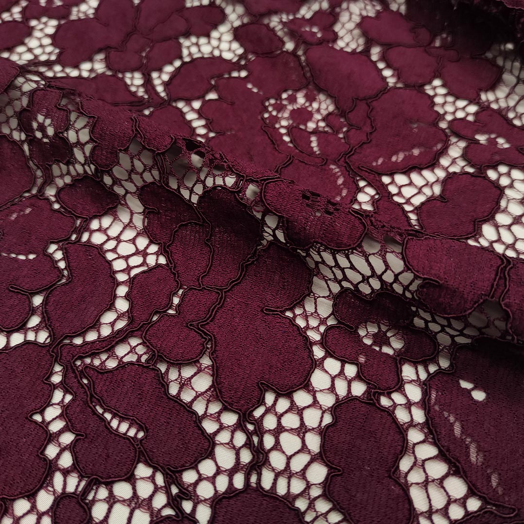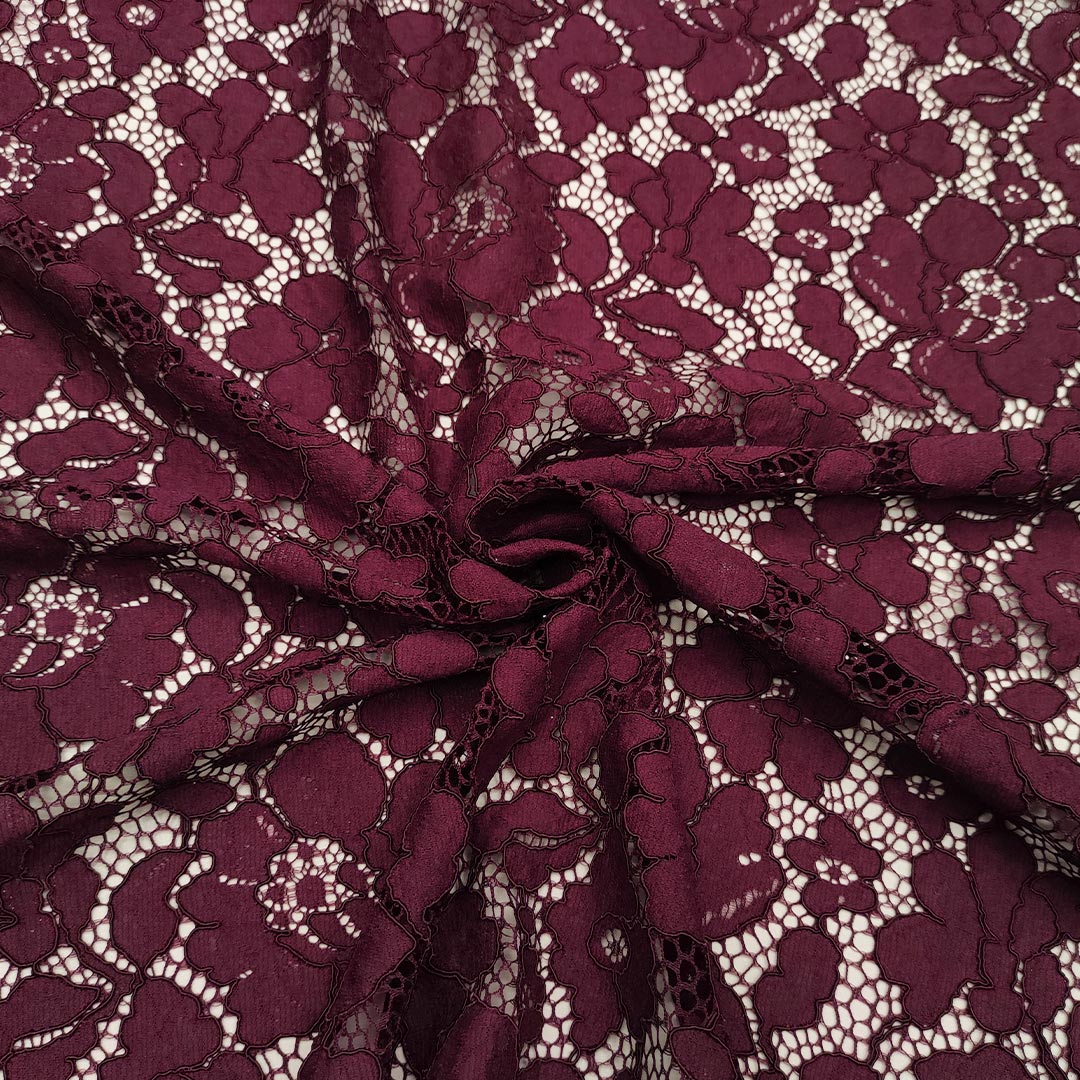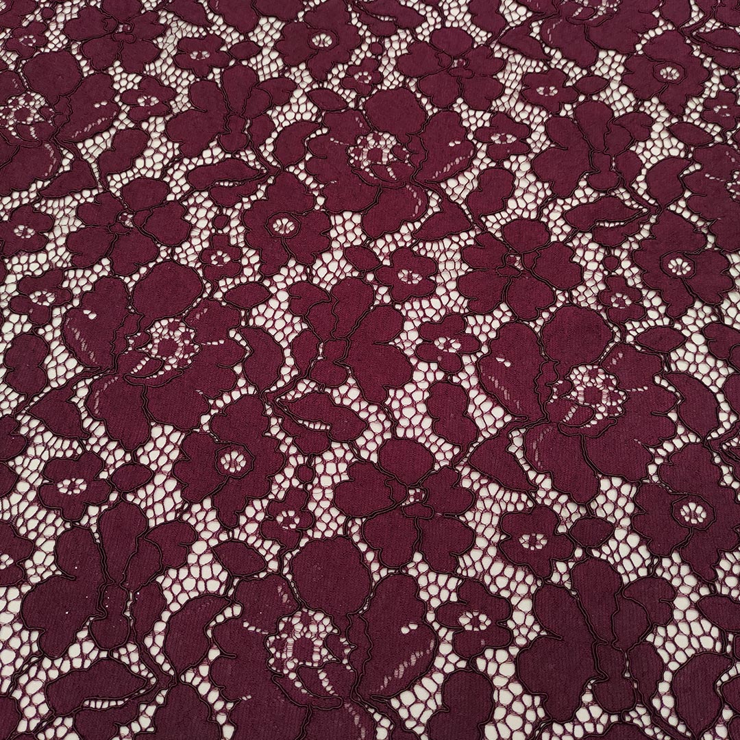 Tessuto Pizzo Rebrodè tinta unita motivo floreale vinaccio