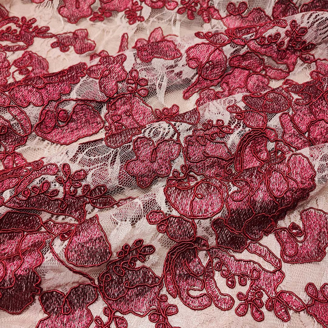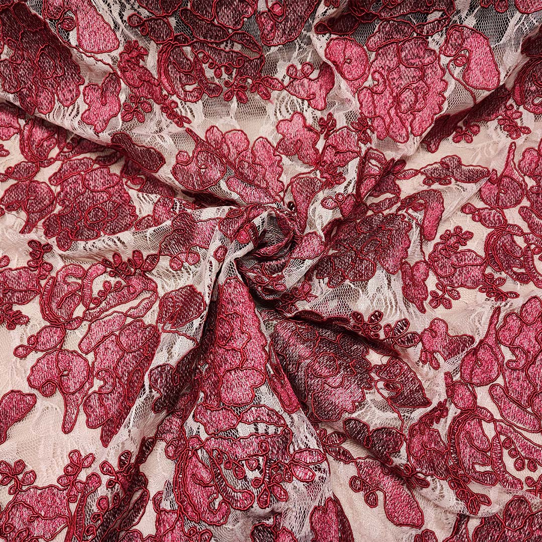 Tessuto Pizzo ricamato motivo floreale beige – bordeaux