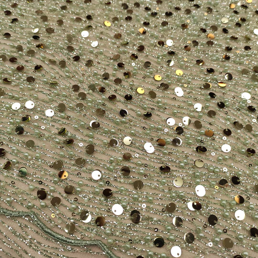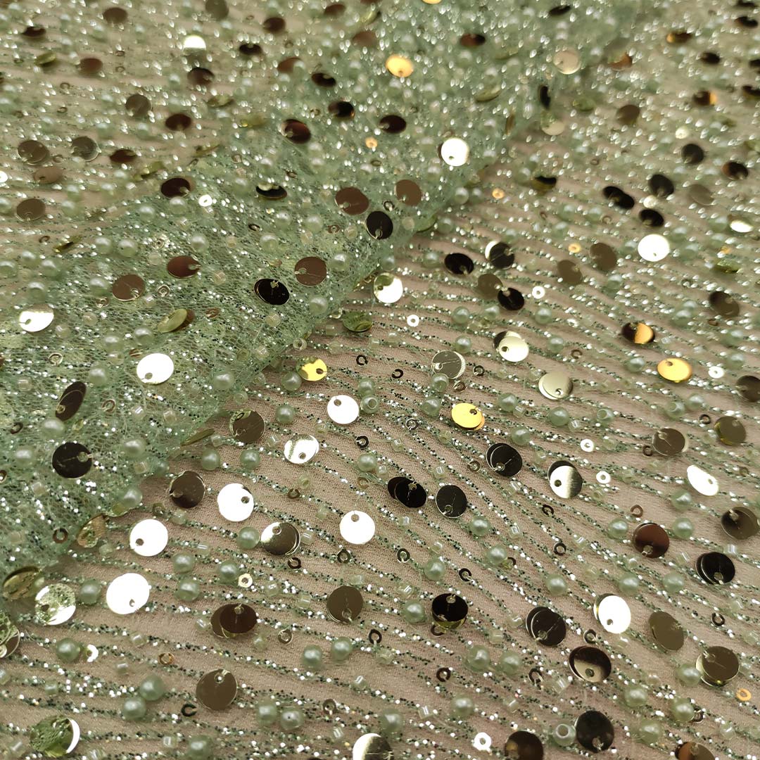 Tessuto Tulle glitter Ricamato con paillettes e con perline motivo astratto verde mela