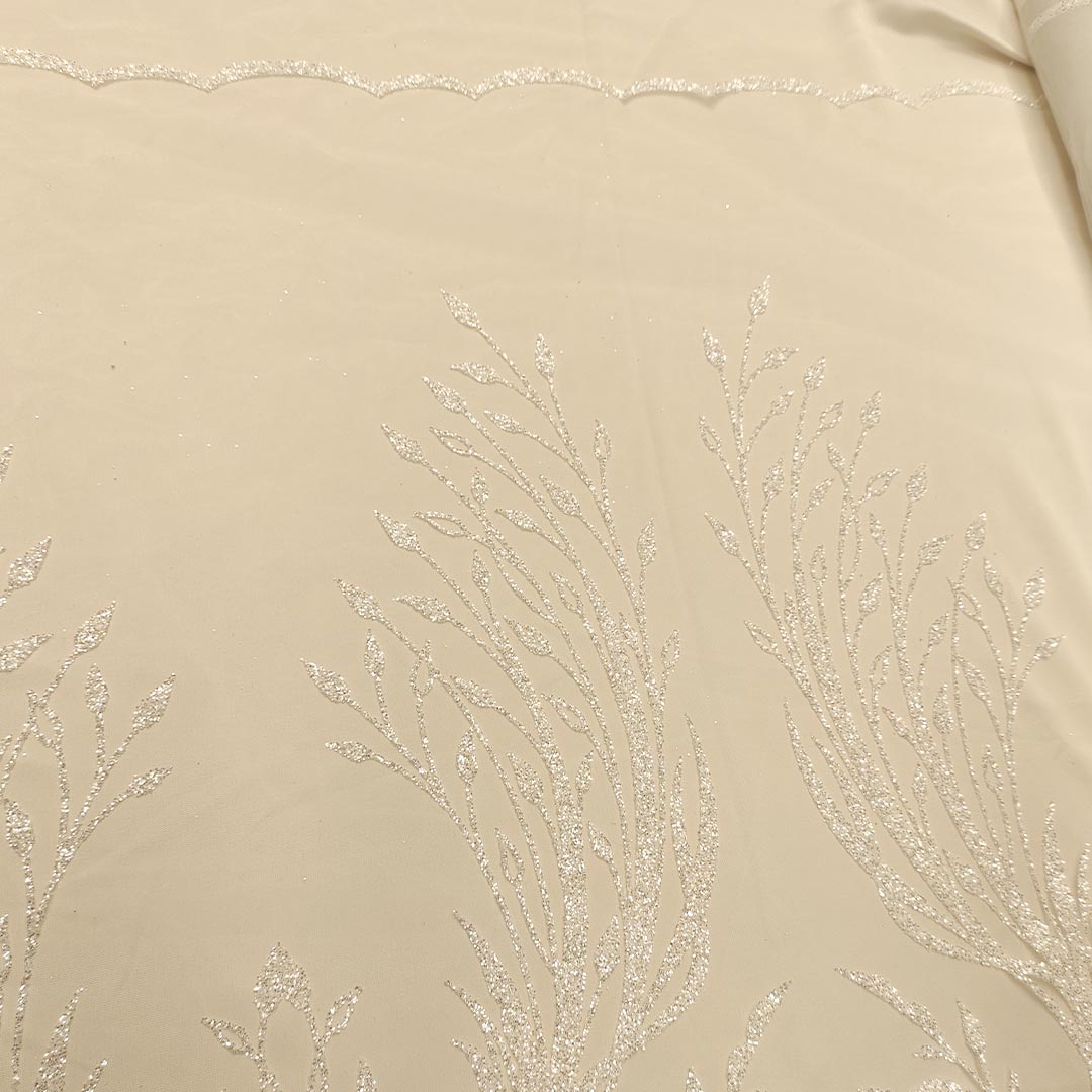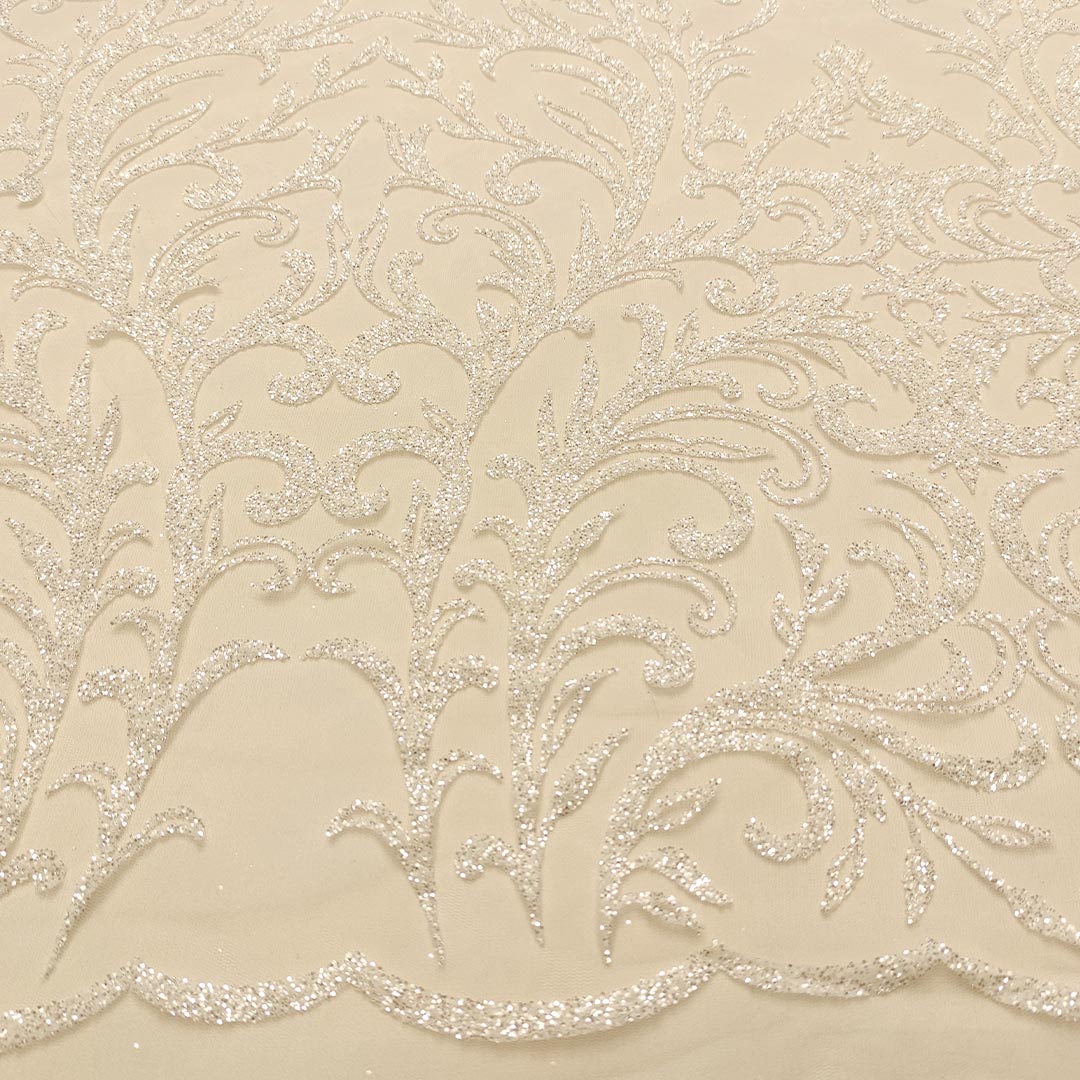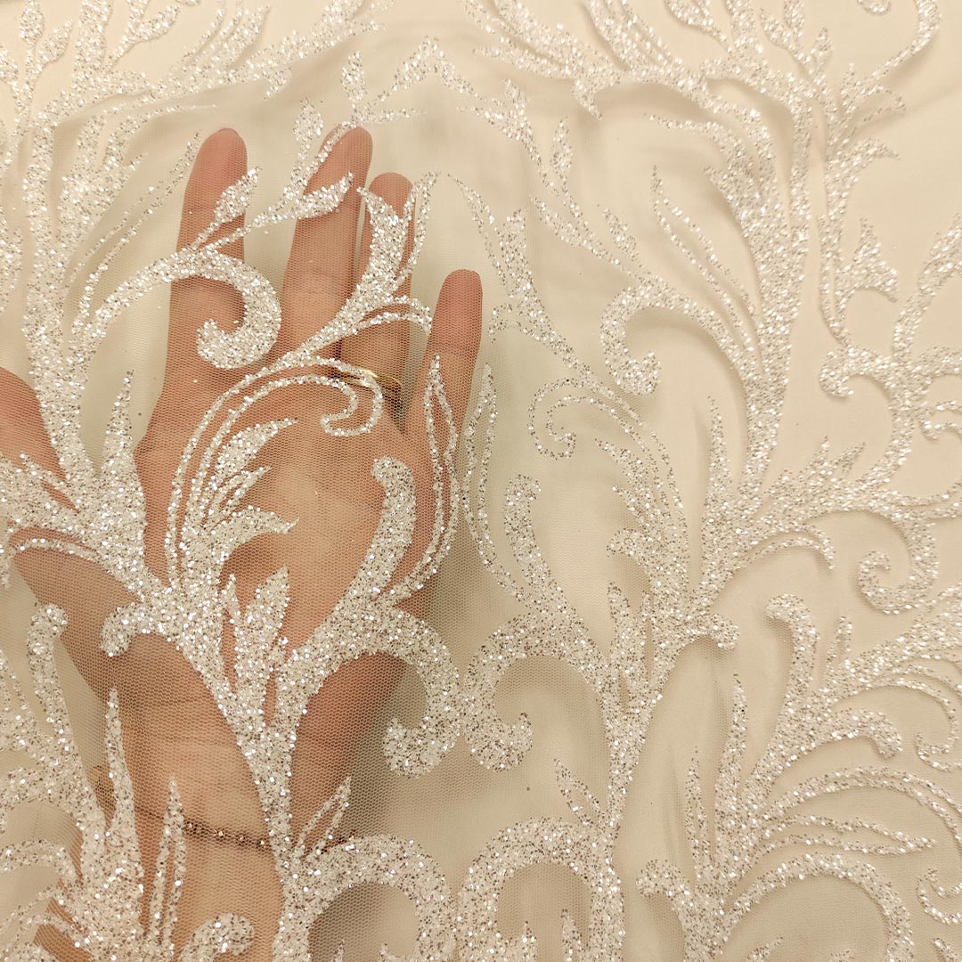 Tessuto Tulle mano seta con glitter dalla mano morbida e dall’aspetto lucente e scintillante, ideale per realizzare capi da cerimonia e per le grandi occasioni.