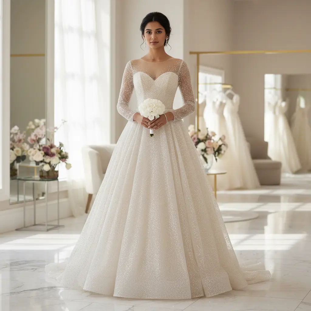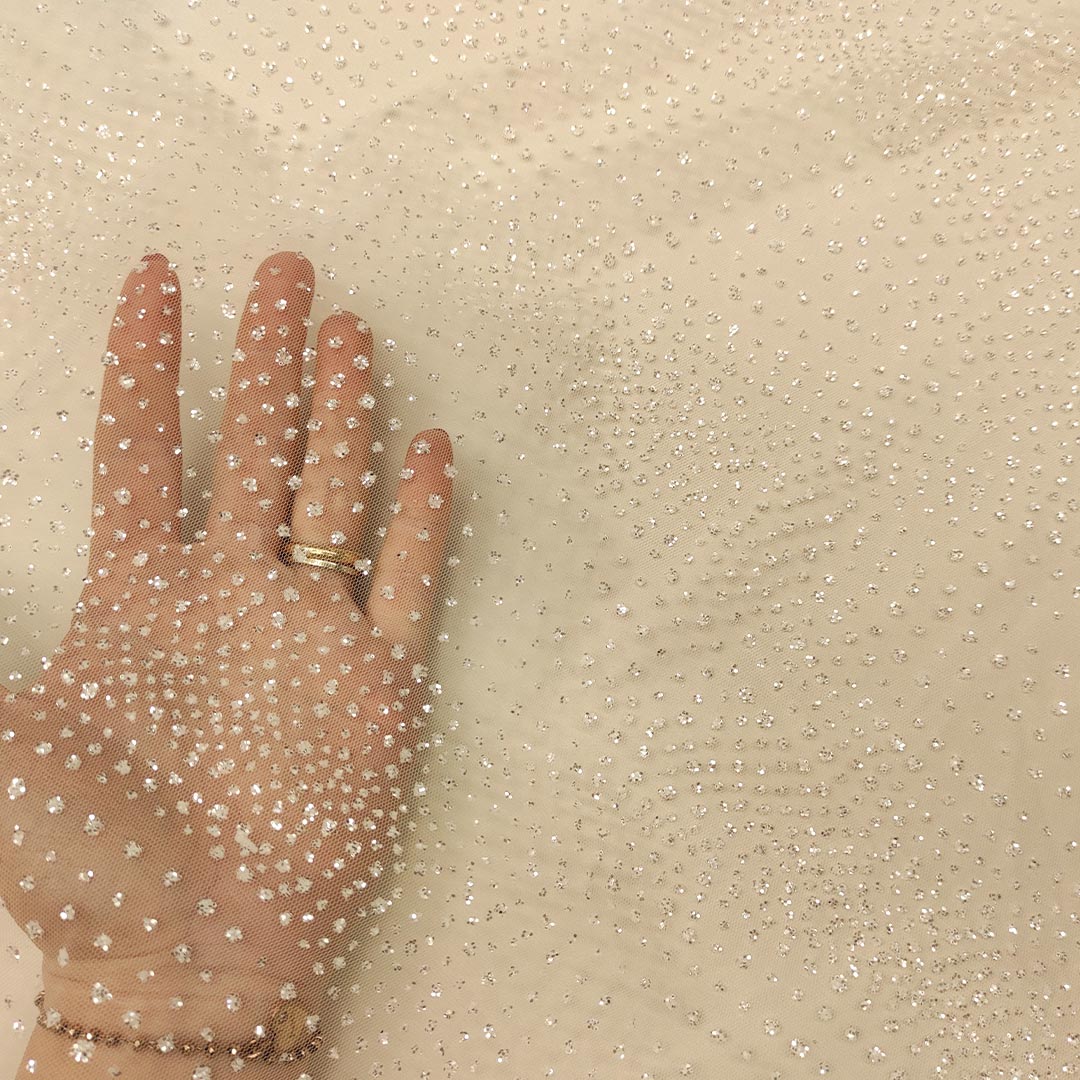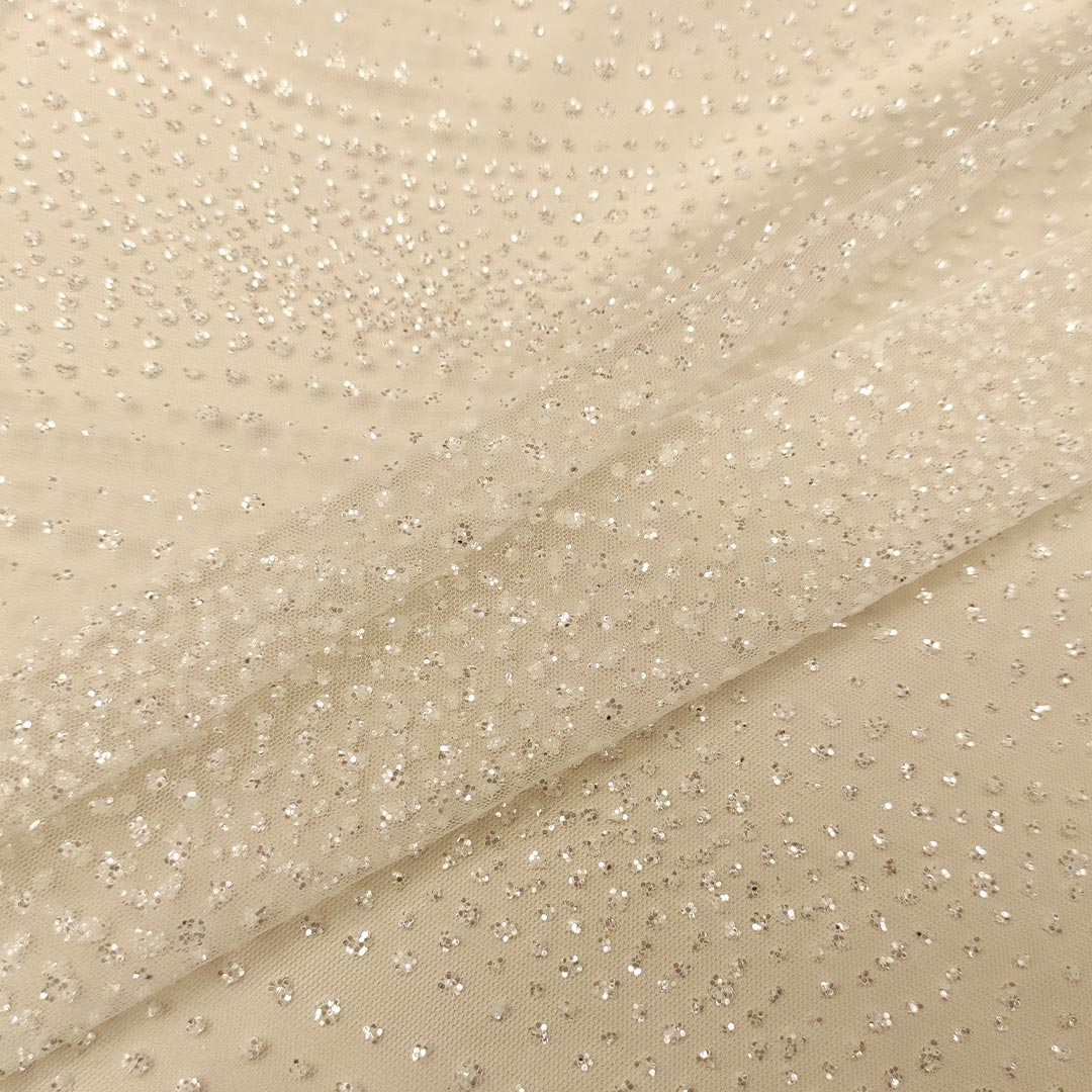 Tessuto Tulle mano seta con glitter dalla mano morbida e dall’aspetto lucente e scintillante, ideale per realizzare capi da cerimonia e per le grandi occasioni.