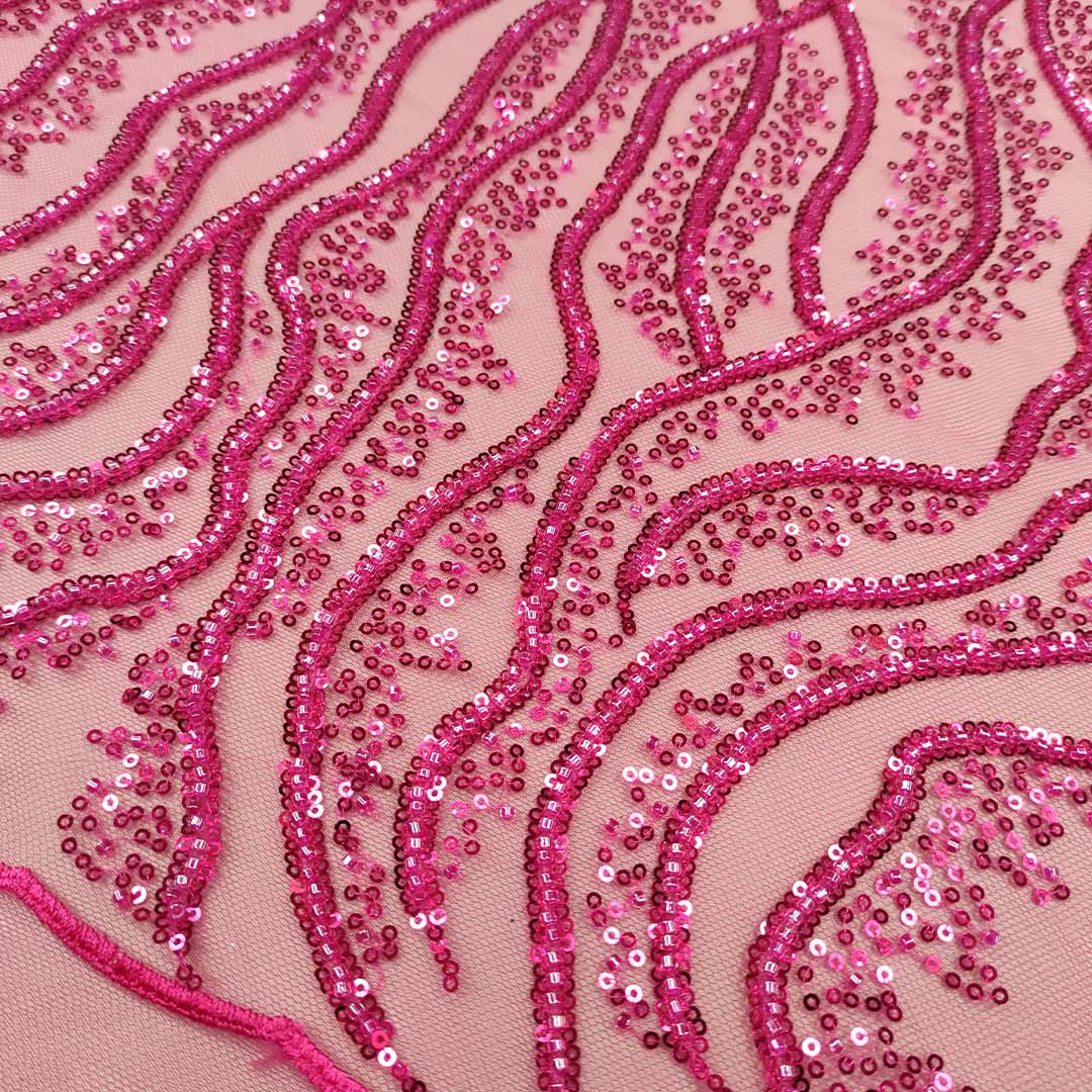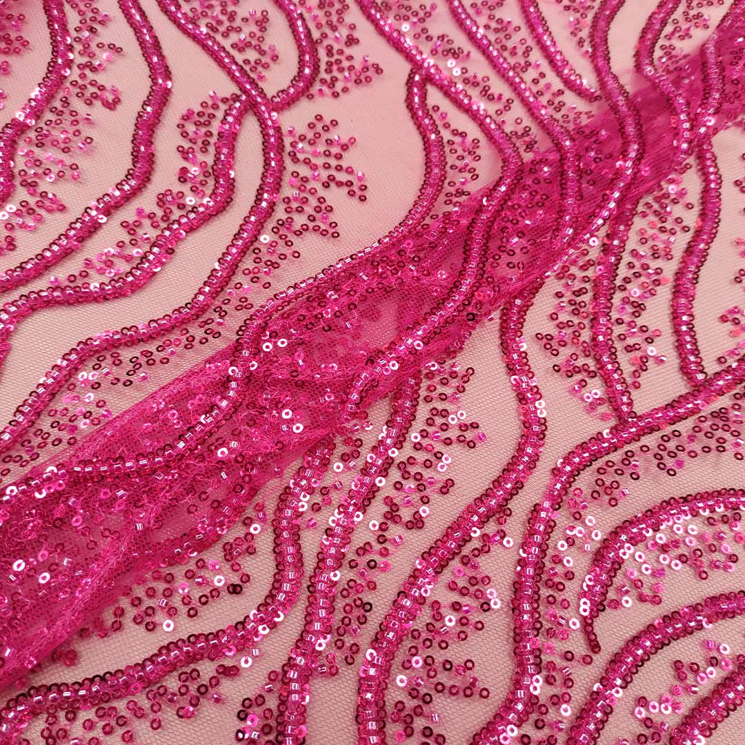 Tessuto Tulle Ricamato con paillettes e con perline ideale per realizzare capi da cerimonia esclusivi ed eleganti.
