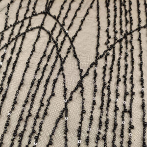 €43,00Il prezzo originale era: €43,00.€35,00Il prezzo attuale è: €35,00. al metroTessuto Tulle mano seta ricamato con perline e paillettes motivo astratto nero