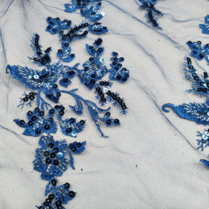 €45,00Il prezzo originale era: €45,00.€34,00Il prezzo attuale è: €34,00. al metroTessuto Tulle mano seta ricamato con perline e paillettes motivo floreale blu elettrico
