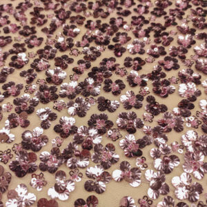 €35,00Il prezzo originale era: €35,00.€25,00Il prezzo attuale è: €25,00. al metroTessuto Tulle mano seta ricamato paillettes motivo floreale rosa antico