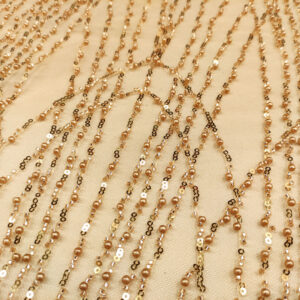 €45,00Il prezzo originale era: €45,00.€35,00Il prezzo attuale è: €35,00. al metroTessuto Tulle mano seta ricamato con perle e pietre motivo astratto oro