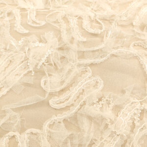 €35,00Il prezzo originale era: €35,00.€15,00Il prezzo attuale è: €15,00. al metroTessuto Tulle mano seta ricamato motivo astratto 3d bianco seta