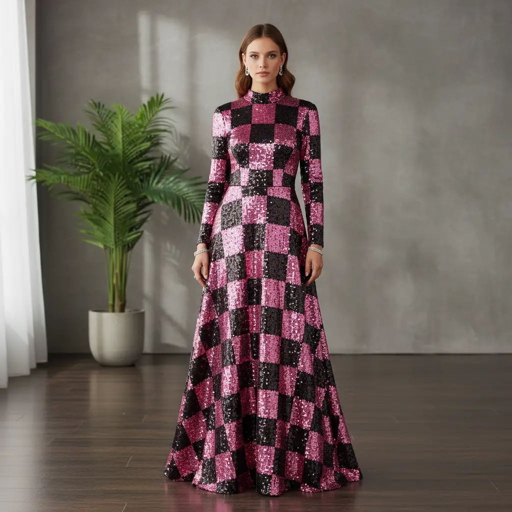 Tessuto Jersey ricamato con paillettes ideale per realizzare capi da cerimonia esclusivi e ricercati.