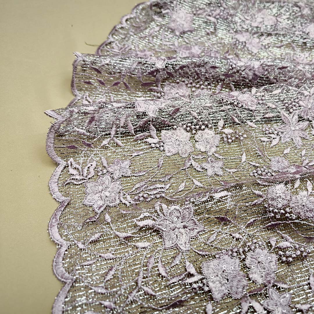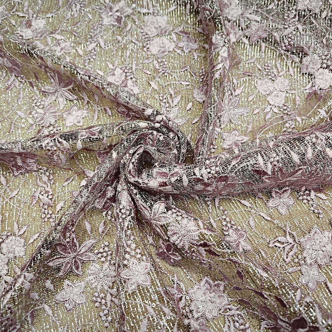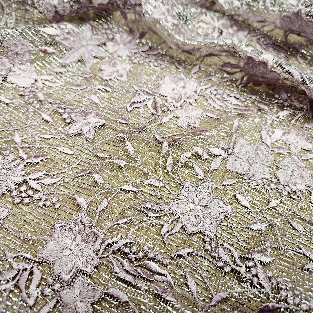 Tessuto Rete ricamato motivo floreale rosa antico – argento