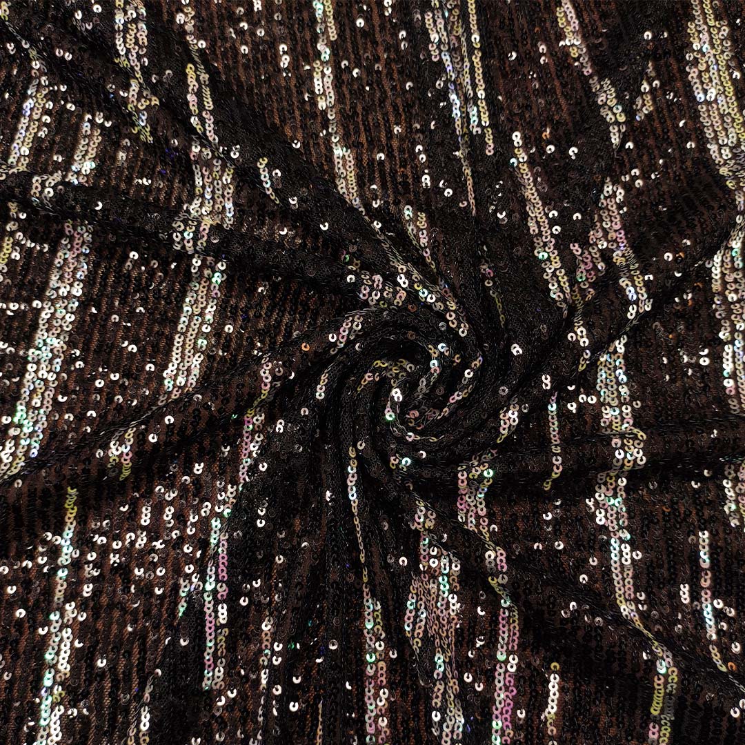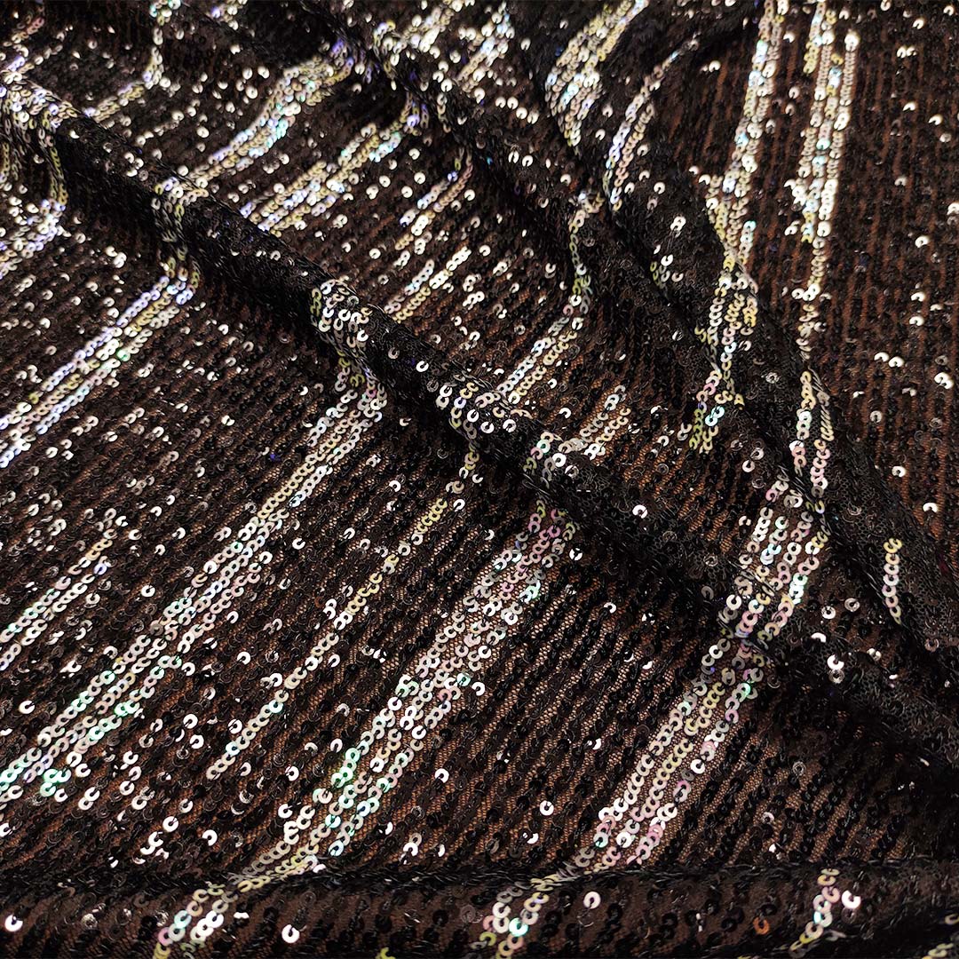 Tessuto Tulle elasticizzato ricamato con paillettes motivo astratto nero – aurora borale