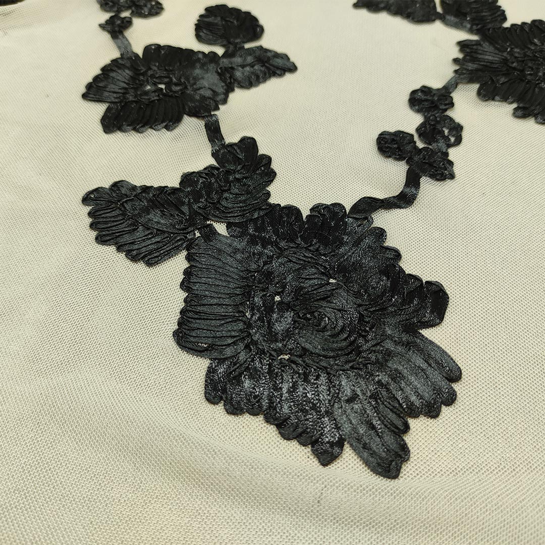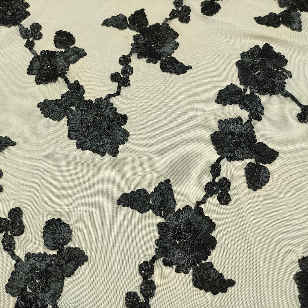 Tessuto Tulle elasticizzato ricamato motivo floreale nero – beige