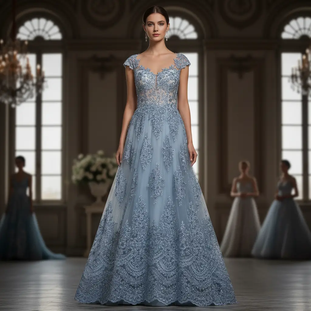 Tessuto Tulle mano seta ricamato con perline e con paillettes ideale per realizzare capi da cerimonia esclusivi ed eleganti.