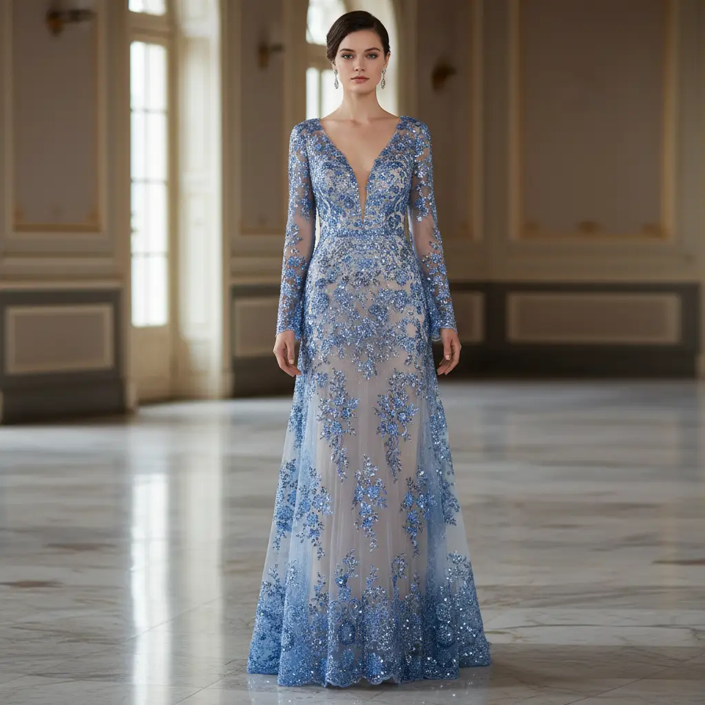 Tessuto Tulle mano seta ricamato con perline e con paillettes ideale per realizzare capi da cerimonia esclusivi ed eleganti.