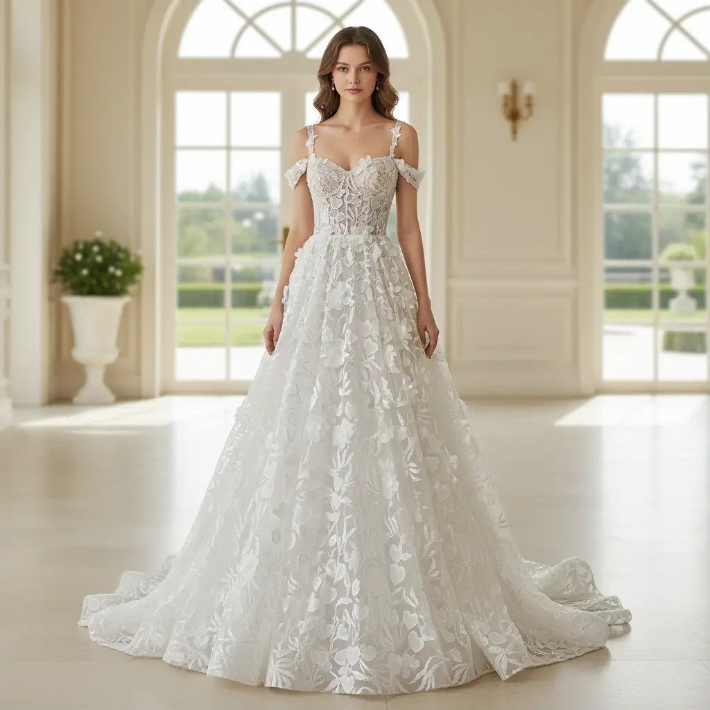 Tessuto Tulle mano seta ricamato con fiori in 3D dalla mano morbida, voluminosa e fluente, ideale per creare capi sartoriali da cerimonia e per le grandi occasioni originali e alla moda.