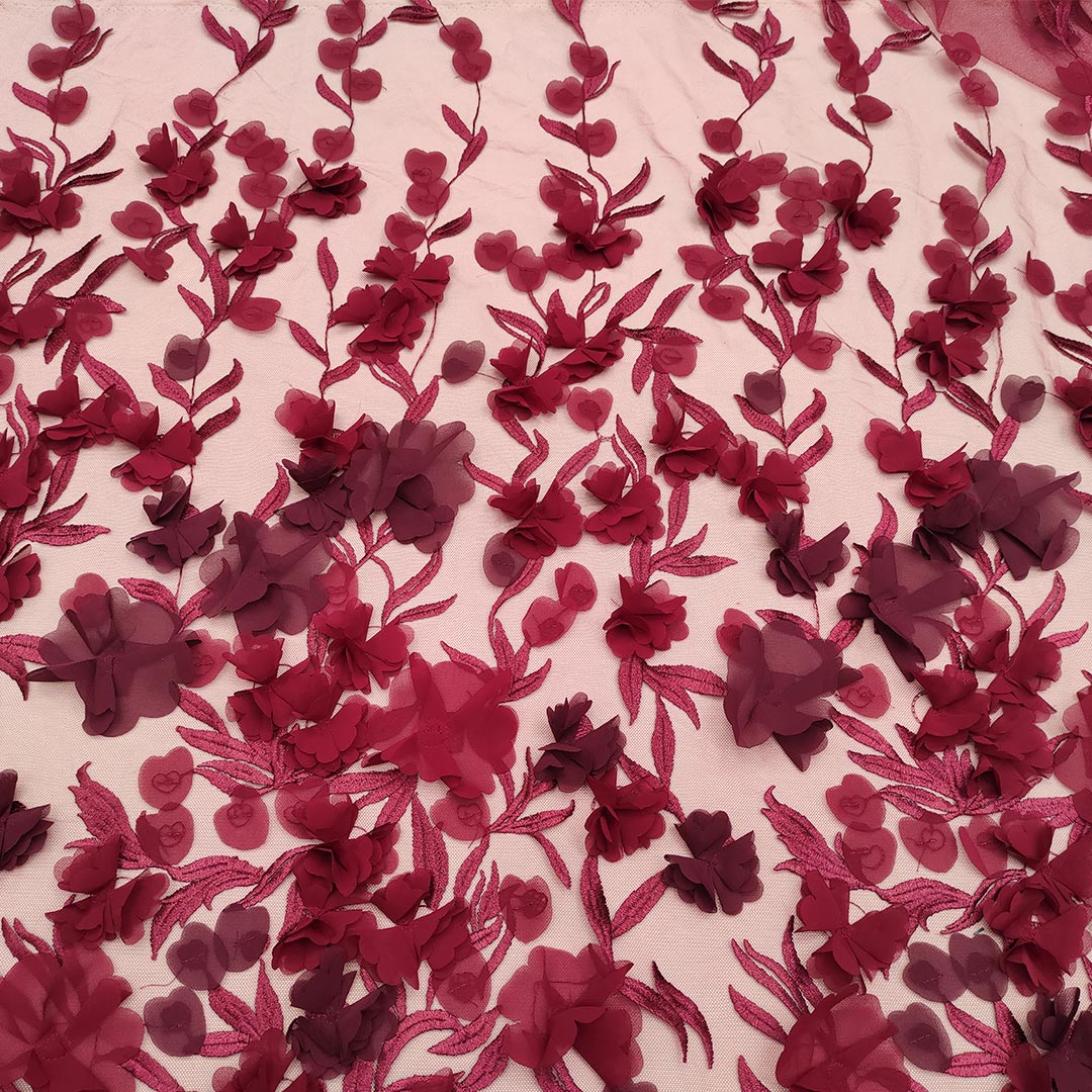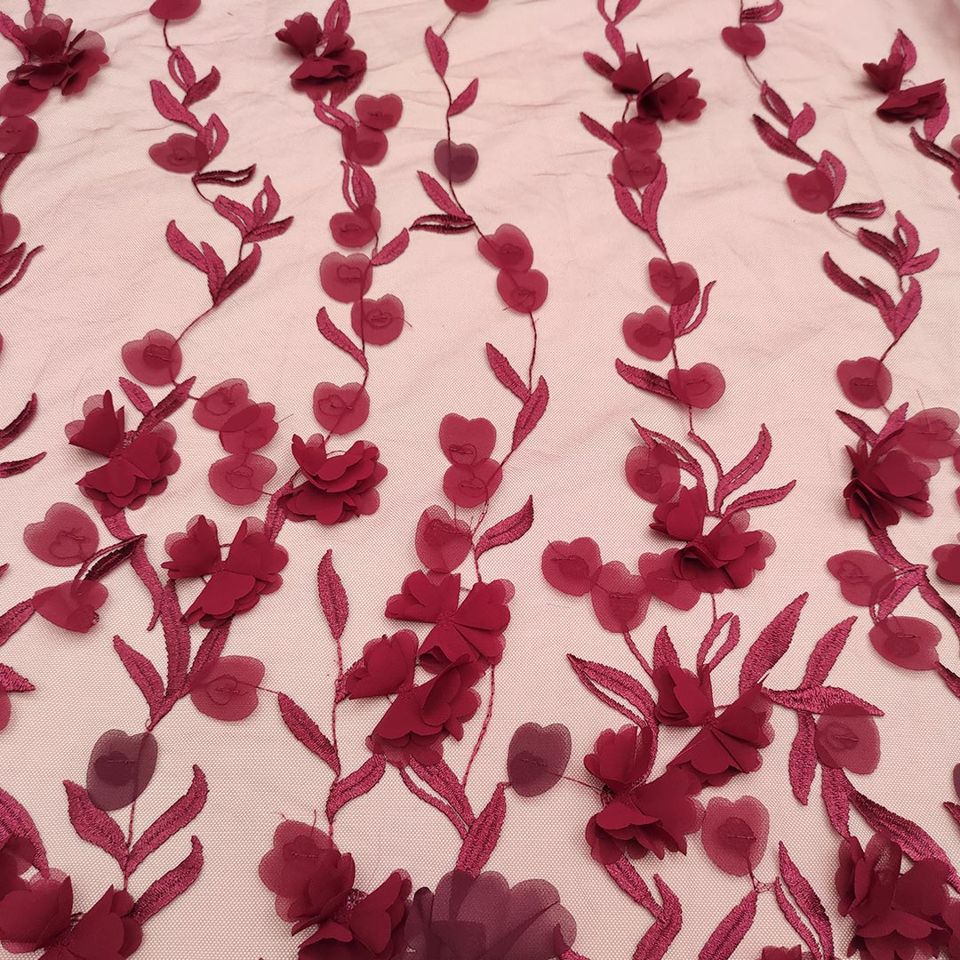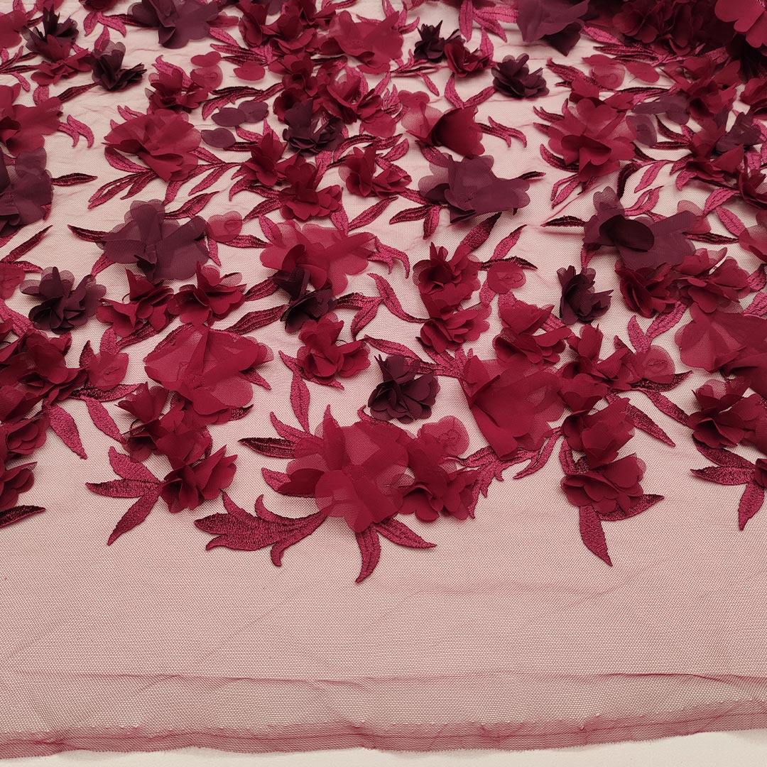 Tessuto Tulle mano seta ricamato con fiori 3D dalla mano morbida, voluminosa e fluente, ideale per creare capi sartoriali da cerimonia e per le grandi occasioni originali e alla moda.