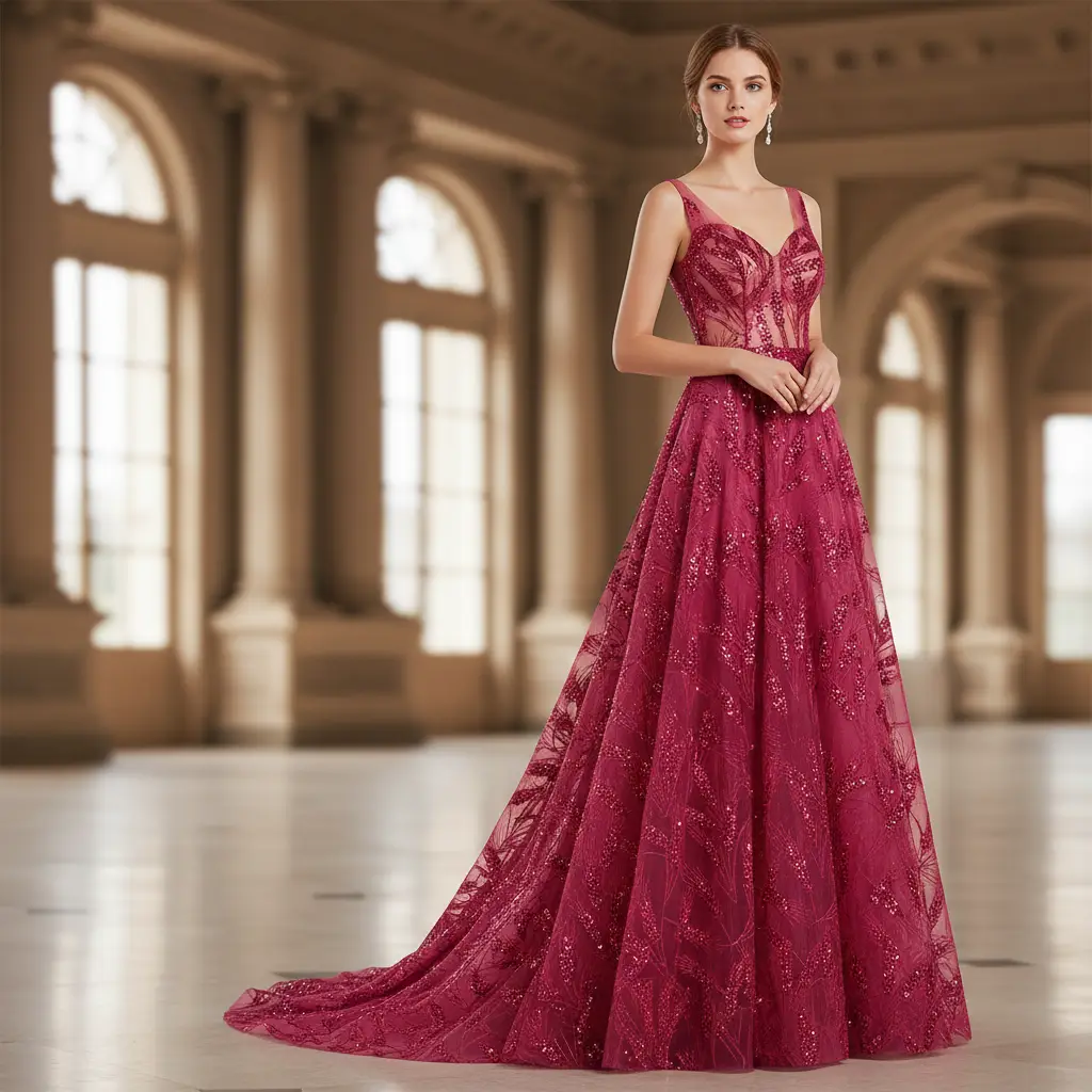 Tessuto Tulle mano seta ricamato micro paillettes ideale per realizzare capi da cerimonia esclusivi ed eleganti.