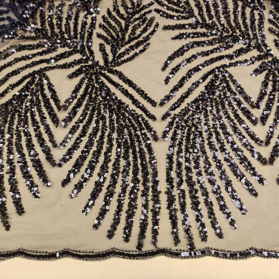 Tessuto Tulle mano seta ricamato con micro paillettes motivo floreale nero