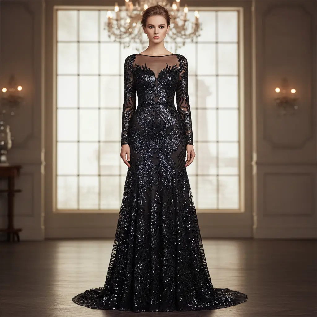 Tessuto Tulle mano seta ricamato con perline e con paillettes ideale per realizzare capi da cerimonia esclusivi ed eleganti.