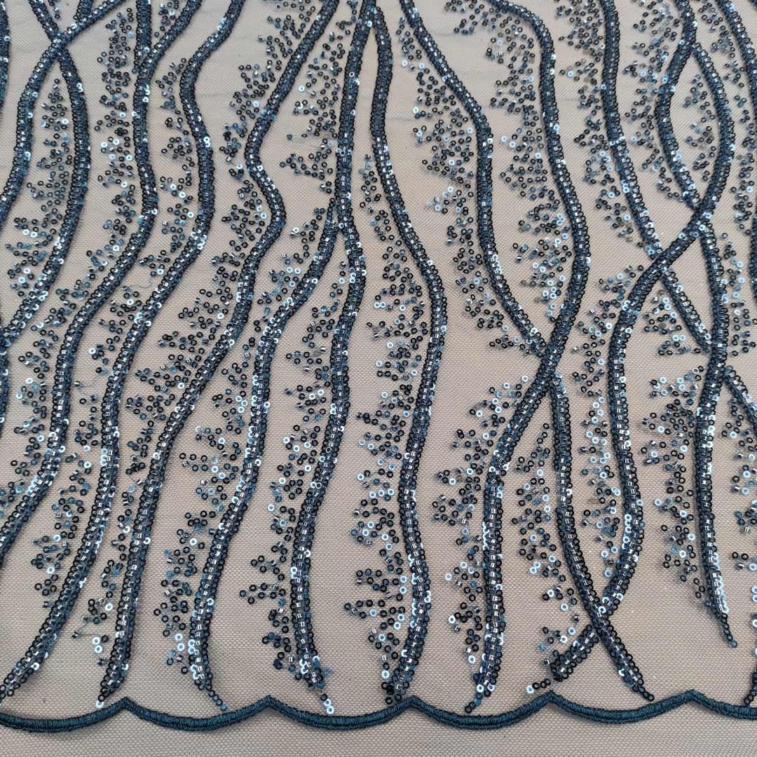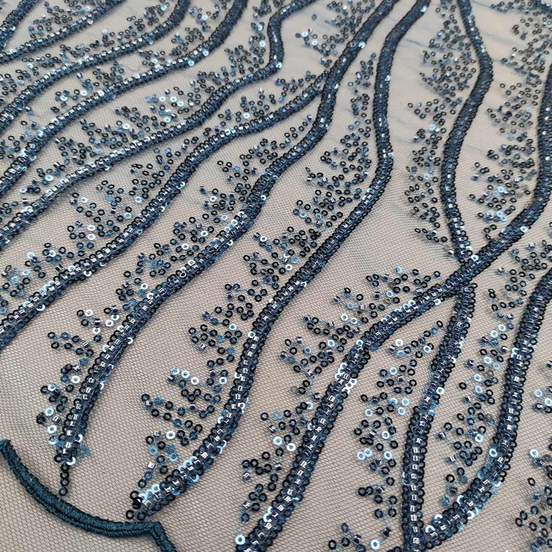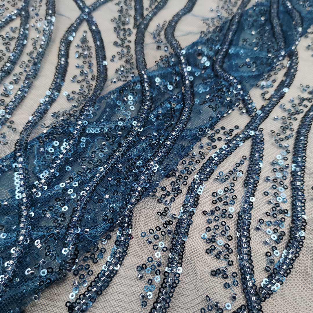 Tessuto Tulle Ricamato con paillettes e con perline ideale per realizzare capi da cerimonia esclusivi ed eleganti.