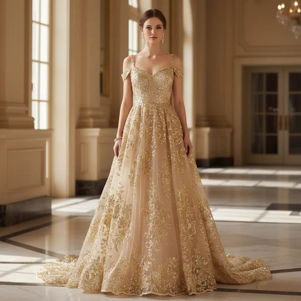 Tessuto Tulle mano seta ricamato con perline e con paillettes ideale per realizzare capi da cerimonia esclusivi ed eleganti.