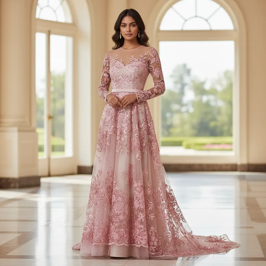 Tessuto Tulle mano seta ricamato con paillettes e con perline motivo floreale rosa