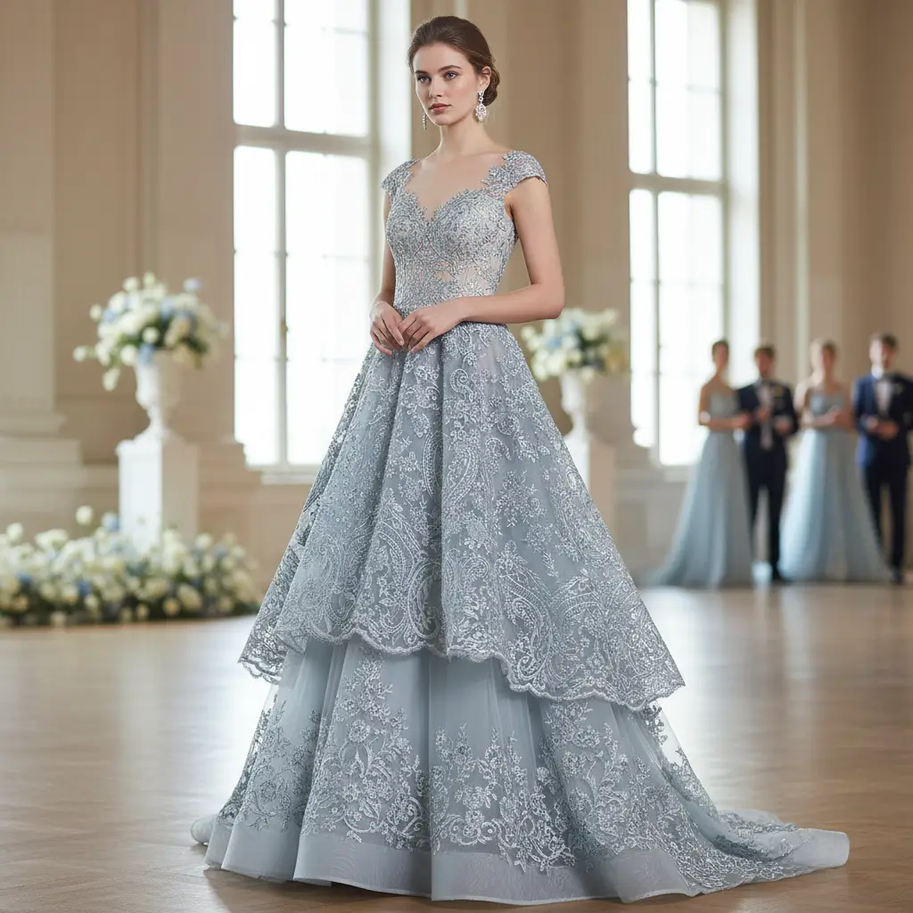 Tessuto Tulle mano seta ricamato con perle, ideale per realizzare capi da cerimonia esclusivi ed eleganti.