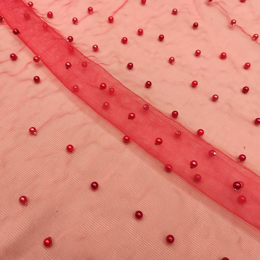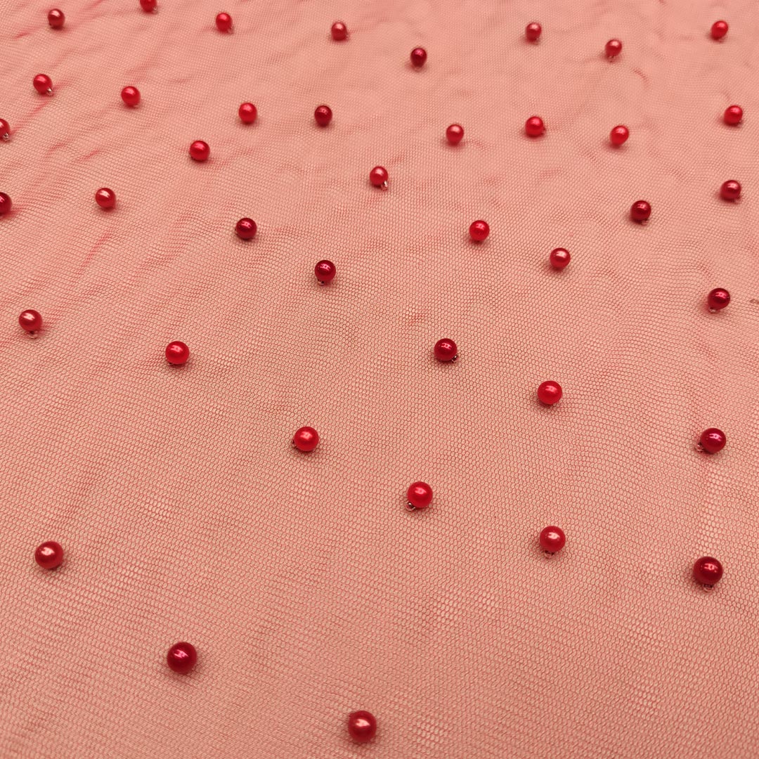 Tessuto Tulle mano seta ricamato con perle ideale per realizzare capi da cerimonia esclusivi ed eleganti.