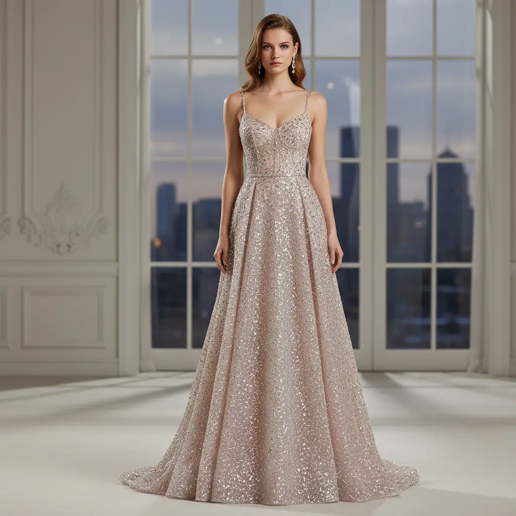 Tessuto Tulle mano seta ricamato con perline con paillettes ideale per realizzare capi da cerimonia esclusivi ed eleganti.