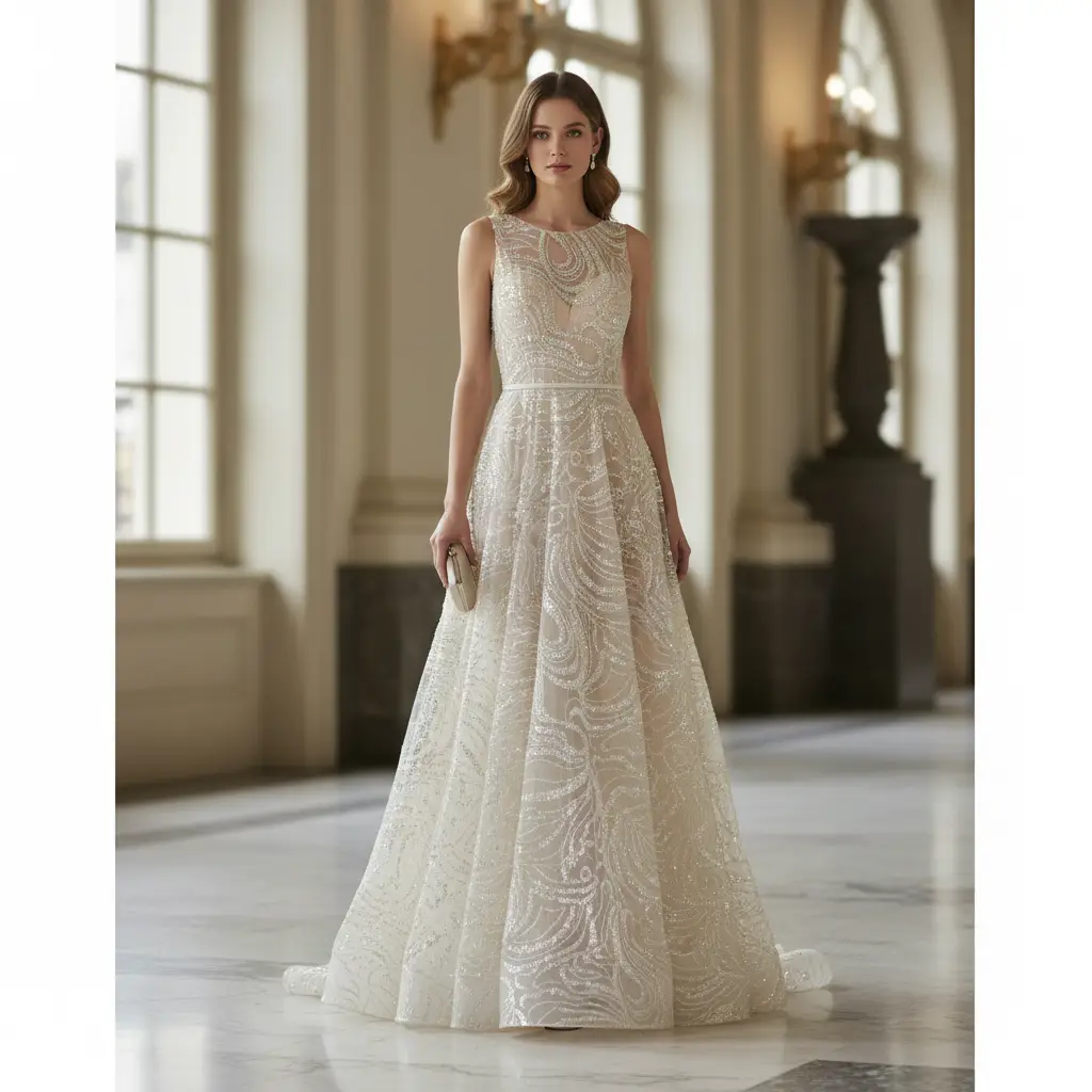 Tessuto Tulle mano seta ricamato con perline e con paillettes ideale per realizzare capi da cerimonia esclusivi ed eleganti.