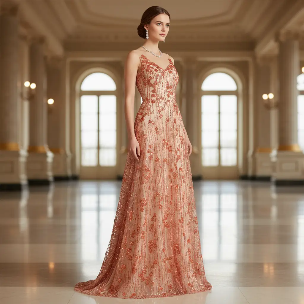 Tessuto Tulle a rete ricamato con perline con paillettes ideale per realizzare capi da cerimonia esclusivi ed eleganti.