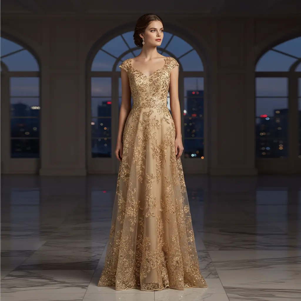 Tessuto Tulle a rete ricamato con perline con paillettes ideale per realizzare capi da cerimonia esclusivi ed eleganti.