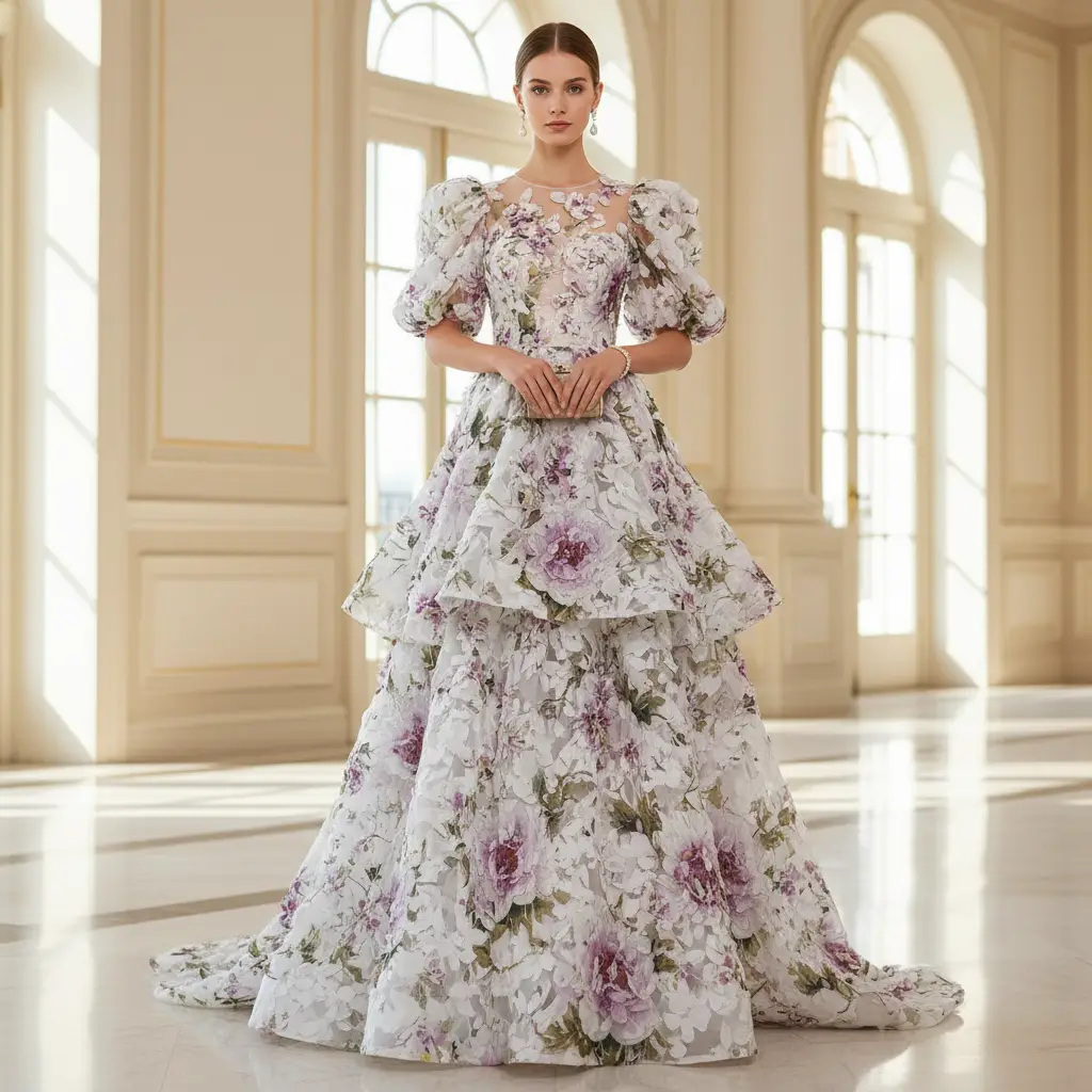 Tessuto Tulle mano seta ricamato con petali 3D dalla mano morbida, voluminosa e fluente, ideale per creare capi sartoriali da cerimonia e per le grandi occasioni originali e alla moda.